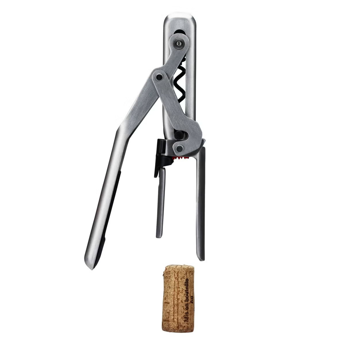 自動でコルクをねじ込み、そのまま引き抜いて開けられます。ナチュラル&合成コルクに対応し、滑りも良好です。