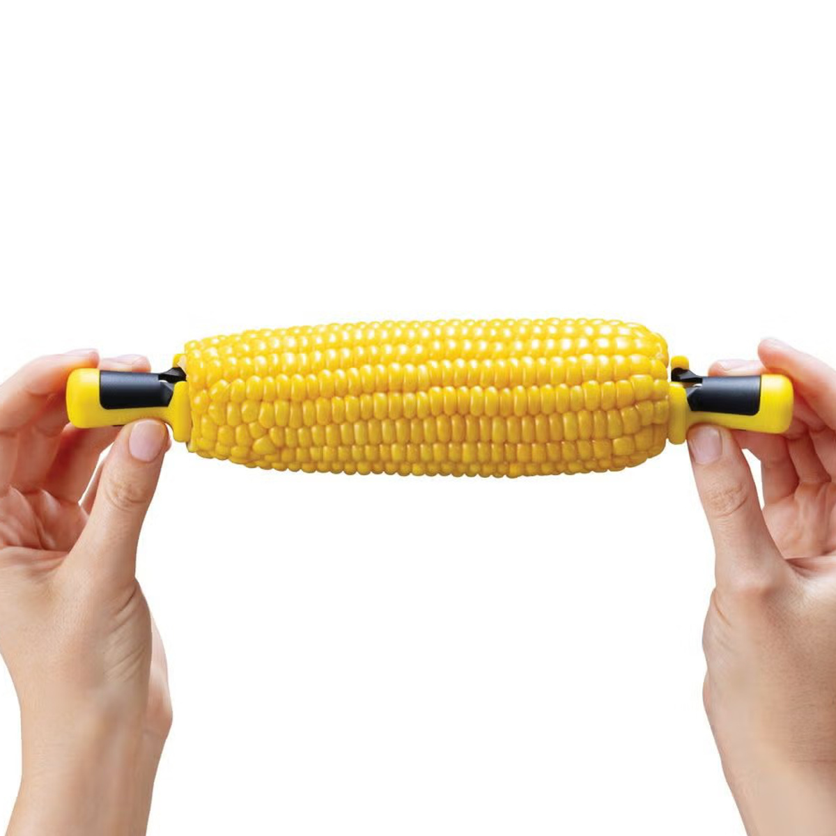 突き刺すことで、熱いコーンも持ちやすく、手を汚さず食べられるようになるアイテムです。食べている途中でも外れにくく、お子様の食事補助としても安心して使用できます。BBQやキャンプ、ホームパーティーに大活躍します。
