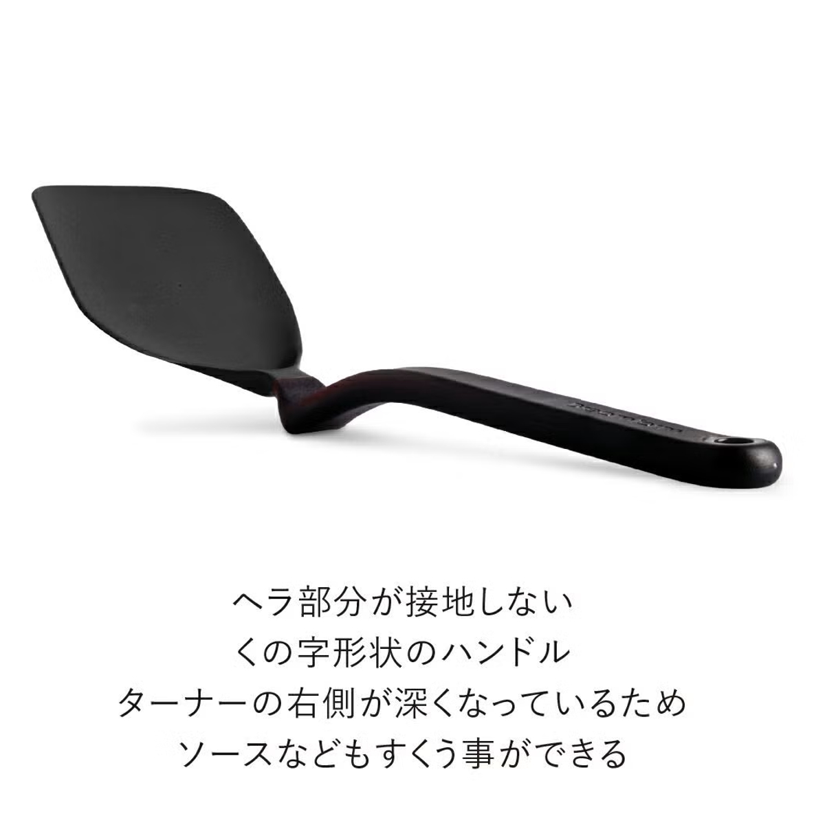 ●くの字形状のハンドルにより、ヘラ部分が調理台に直接触れない設計です。