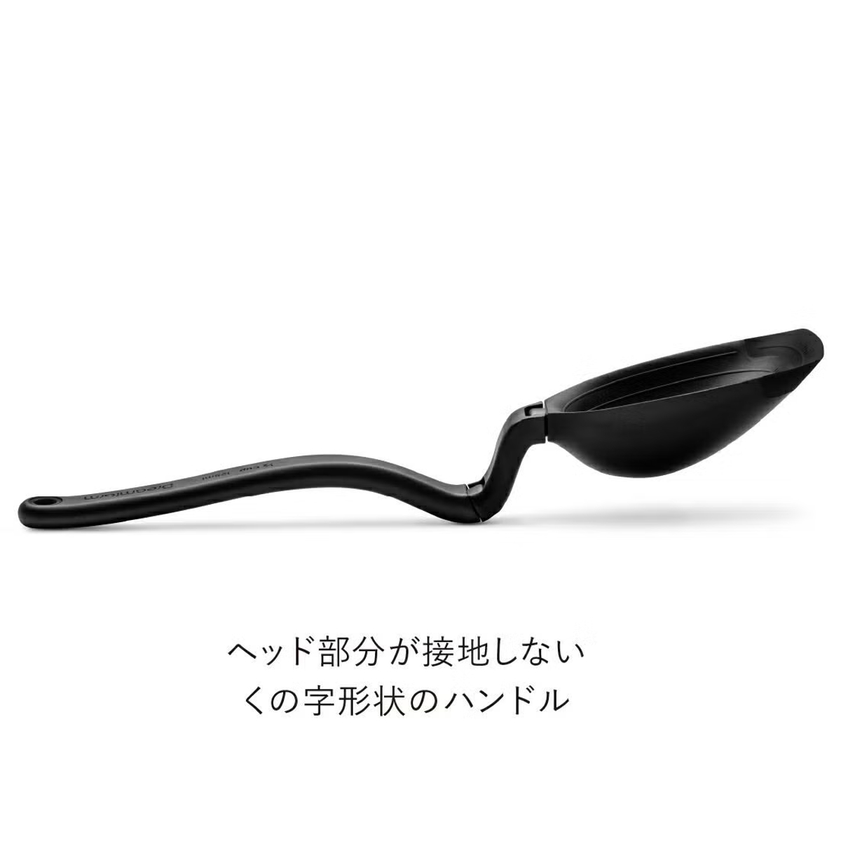 ●くの字形状のハンドルにより、ヘッド部分が調理台に直接触れない設計です。
