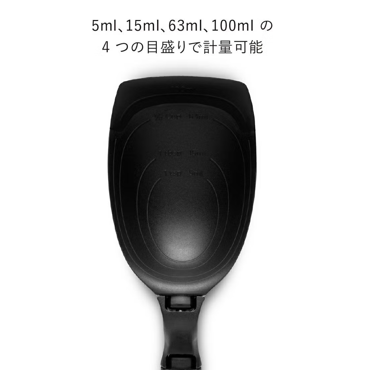 5ml・15ml・65ml・100mlの4つの目盛りがついており、計量スプーンやカップ代わりにも使えます。調味料やスープの分量をそのまま量れるため、洗い物を減らせるのも嬉しいポイントです。