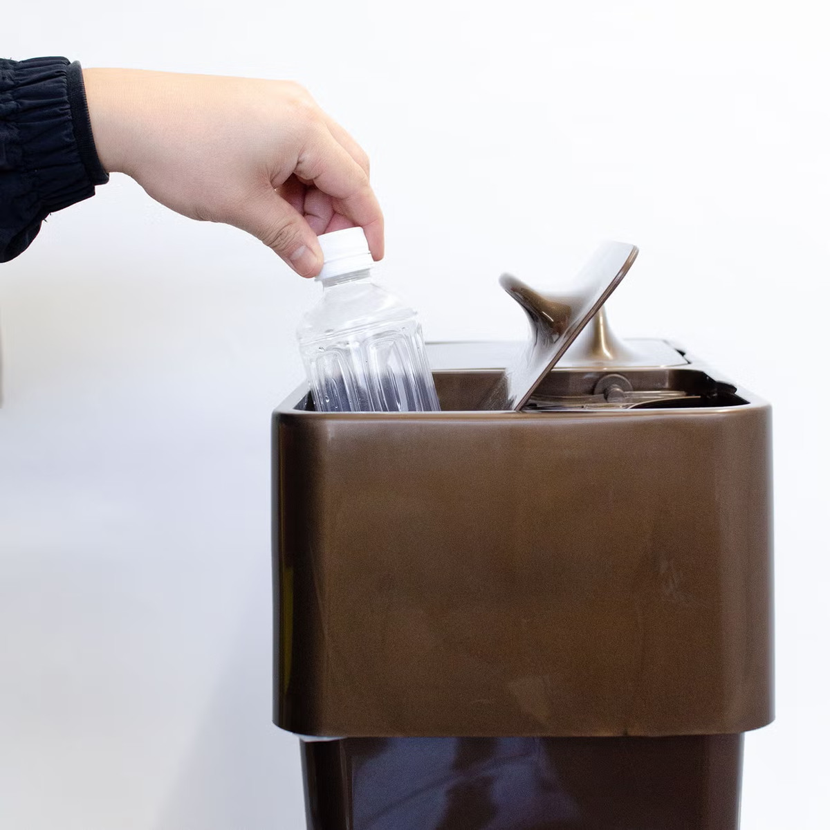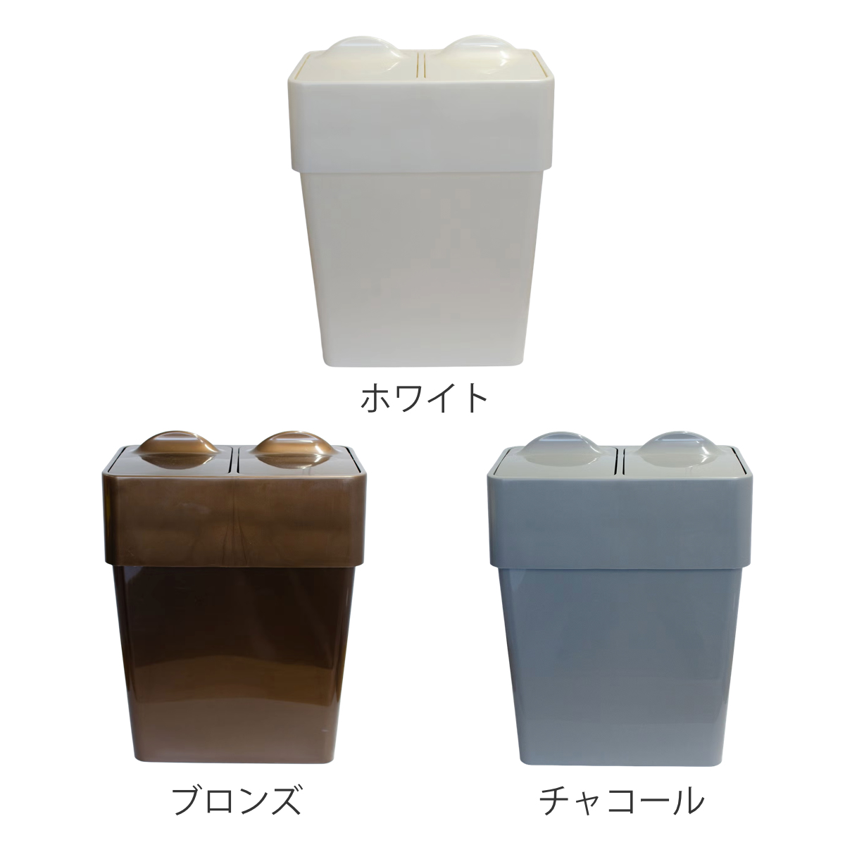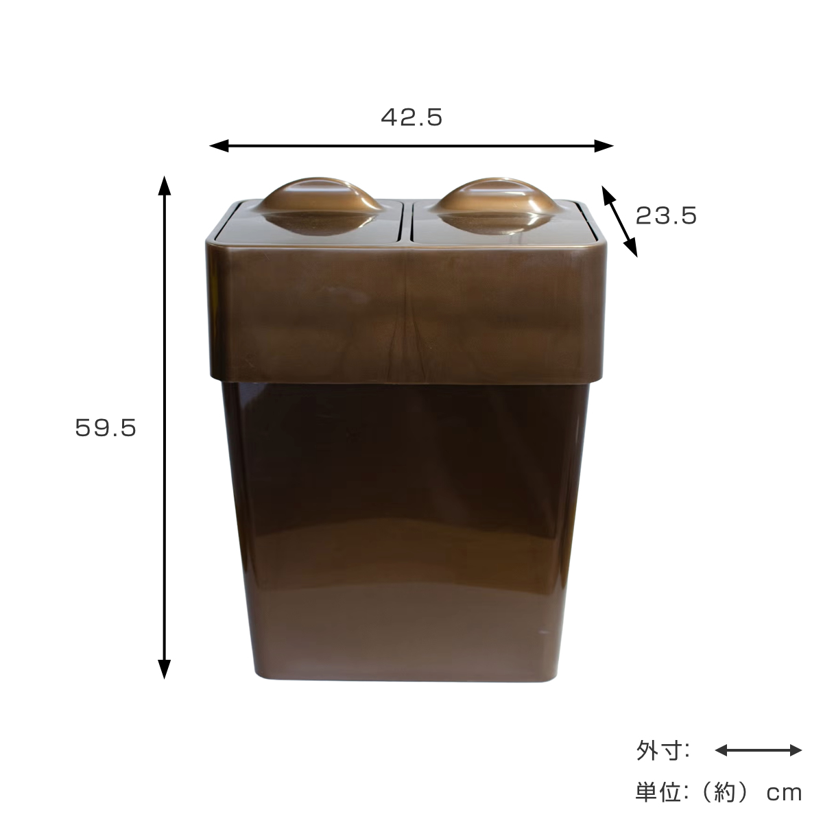 内部に設計されたくぼみを利用し、2つの袋をセットするだけで簡単に分別することができるゴミ箱です。キッチンのすき間や部屋のすみなどに置いてもすっきりと収まるサイズ感です。