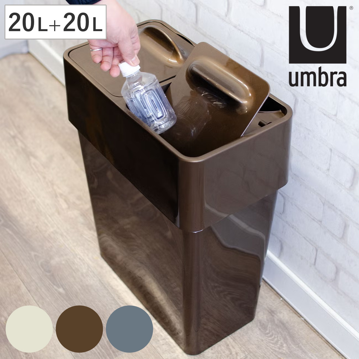 umbra ゴミ箱 20L エコリッドカン 分別 ( アンブラ ごみ箱 20リットル 40リットル 幅42.5 2分別 ふた付き 無地 シンプル ポリプロピレン 袋か見えない キッチン ) 【チャコール】