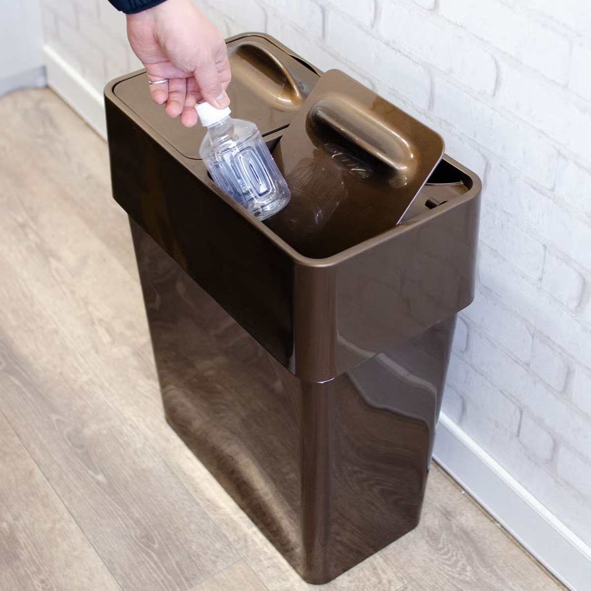 ●中が2分別されているスリムなサイズ感のゴミ箱です。