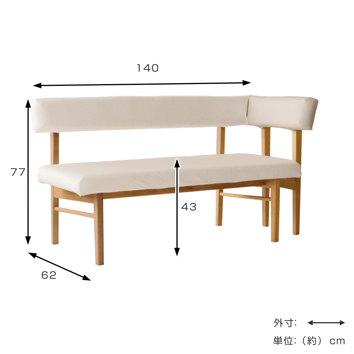 ダイニングベンチ 幅140cm 左肘タイプ コーナーベンチ フレシア ( 開梱設置 チェアー 長椅子 椅子 ダイニング ベンチ イス ペット 食卓椅子 木製 ベンチチェア チェア 長いす L字 食卓ベンチ 背もたれ付き ファブリック 天然木 ) 【ホワイト】のレビュー