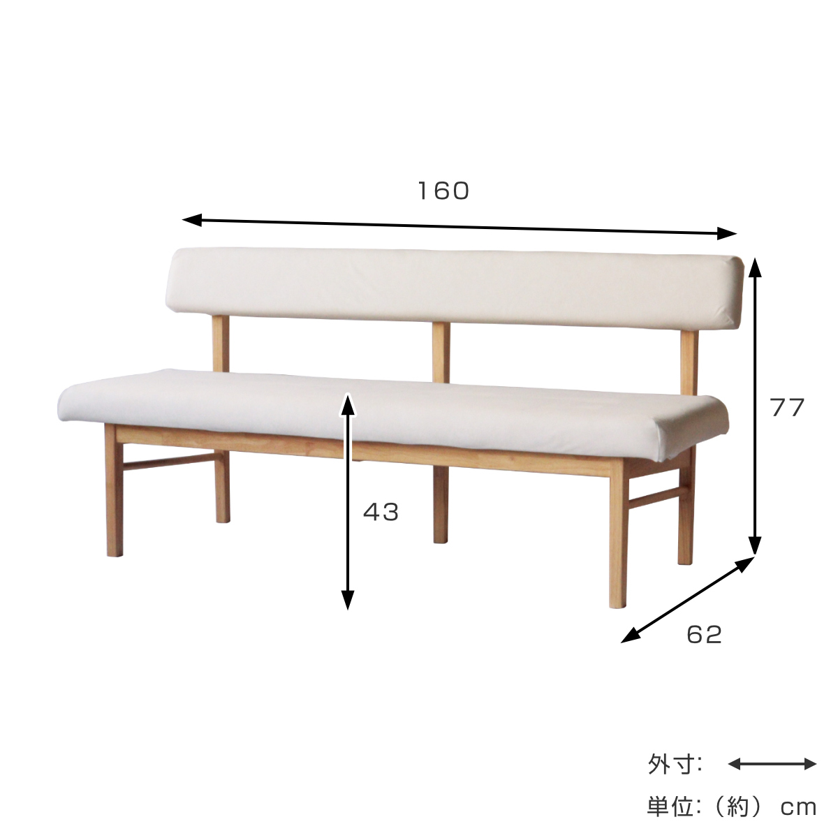 ダイニングベンチ 幅160cm 背付きベンチ フレシア ( 開梱設置 チェアー 長椅子 椅子 ダイニング ベンチ イス ペット 食卓椅子 木製 ベンチチェア チェア 長いす 食卓ベンチ 背もたれ付き ファブリック 天然木 ) 【ホワイト】