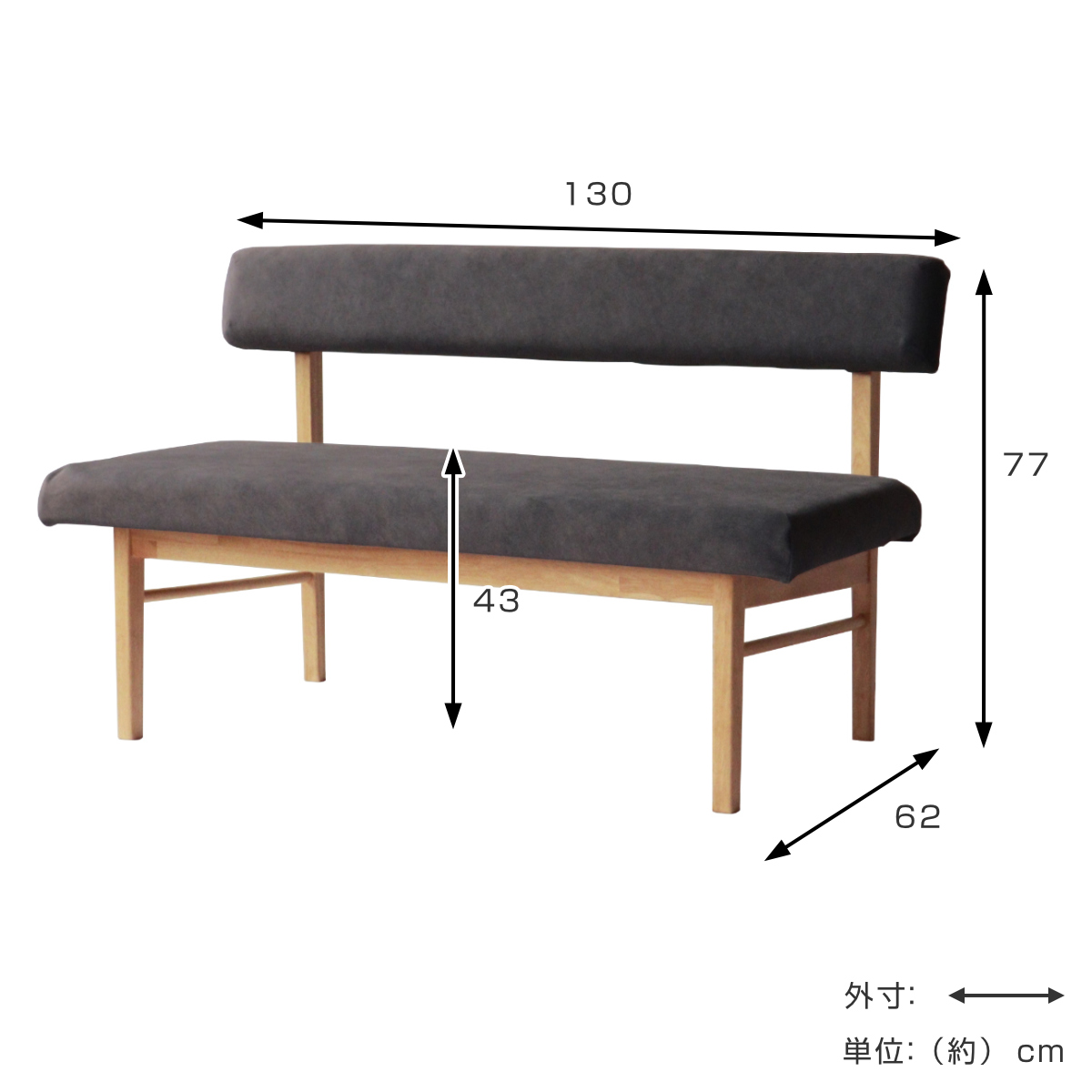 | サイズ | 約 幅130×奥行62×高さ77(cm) 座面高:約 43(cm) |