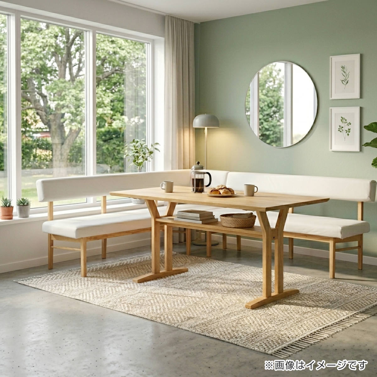 やさしい木の風合いと、すっきりとしたフォルムが魅力のダイニングシリーズ。空間に自然と溶け込むナチュラルデザインで、くつろぎと実用性を兼ね備えています。コーナー使いができるベンチや、サイズ違いのテーブルなどを組み合わせることで、ライフスタイルや間取りに合わせたレイアウトが可能。限られたスペースでも効率よく使え、家族団らんの時間をより快適に演出します。