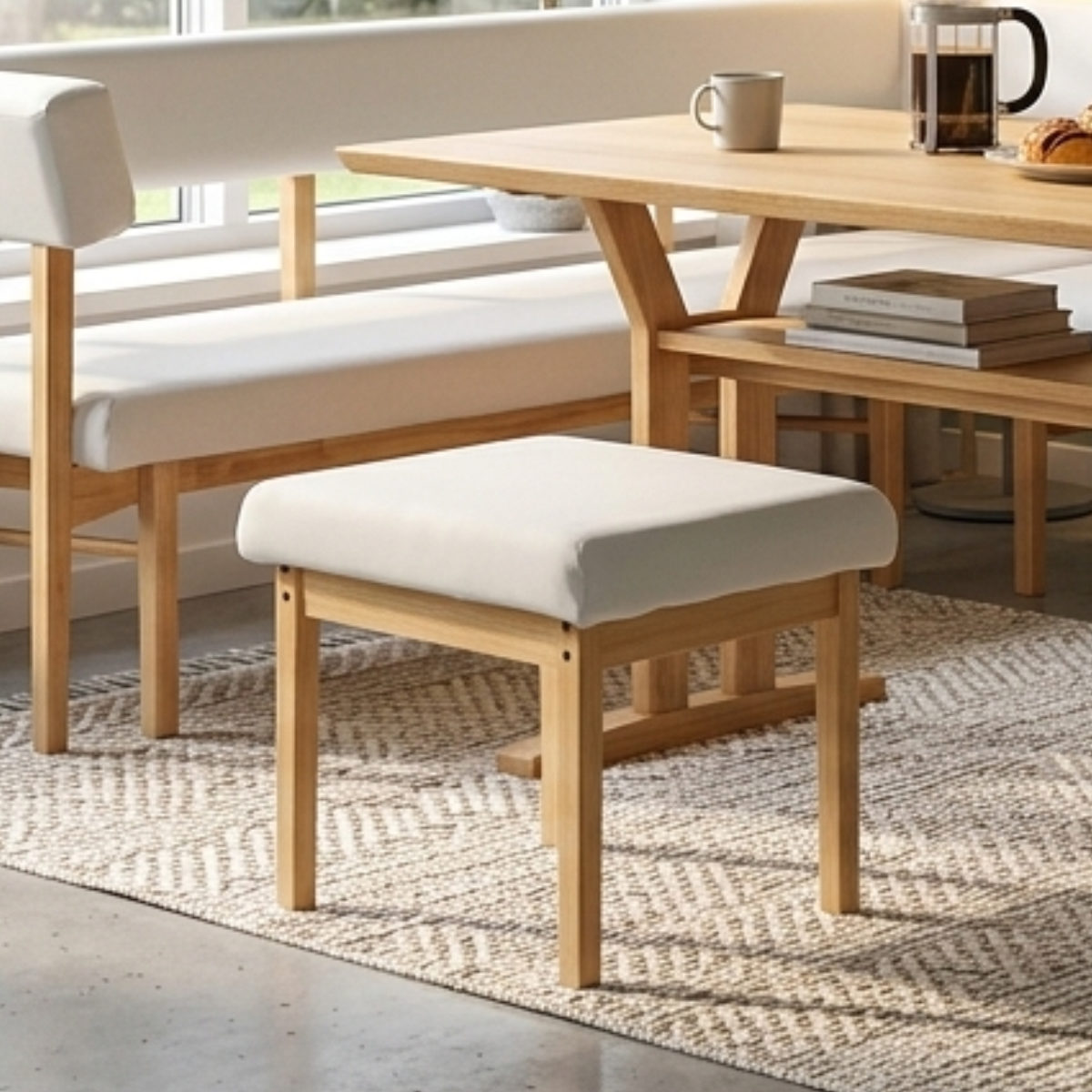 ダイニングの補助席としてはもちろん、来客時やちょっとした腰掛けにも便利です。移動しやすく、必要な場所にサッと持ち運べるため、暮らしの中で柔軟に活躍。省スペースでも使いやすい万能アイテムです。