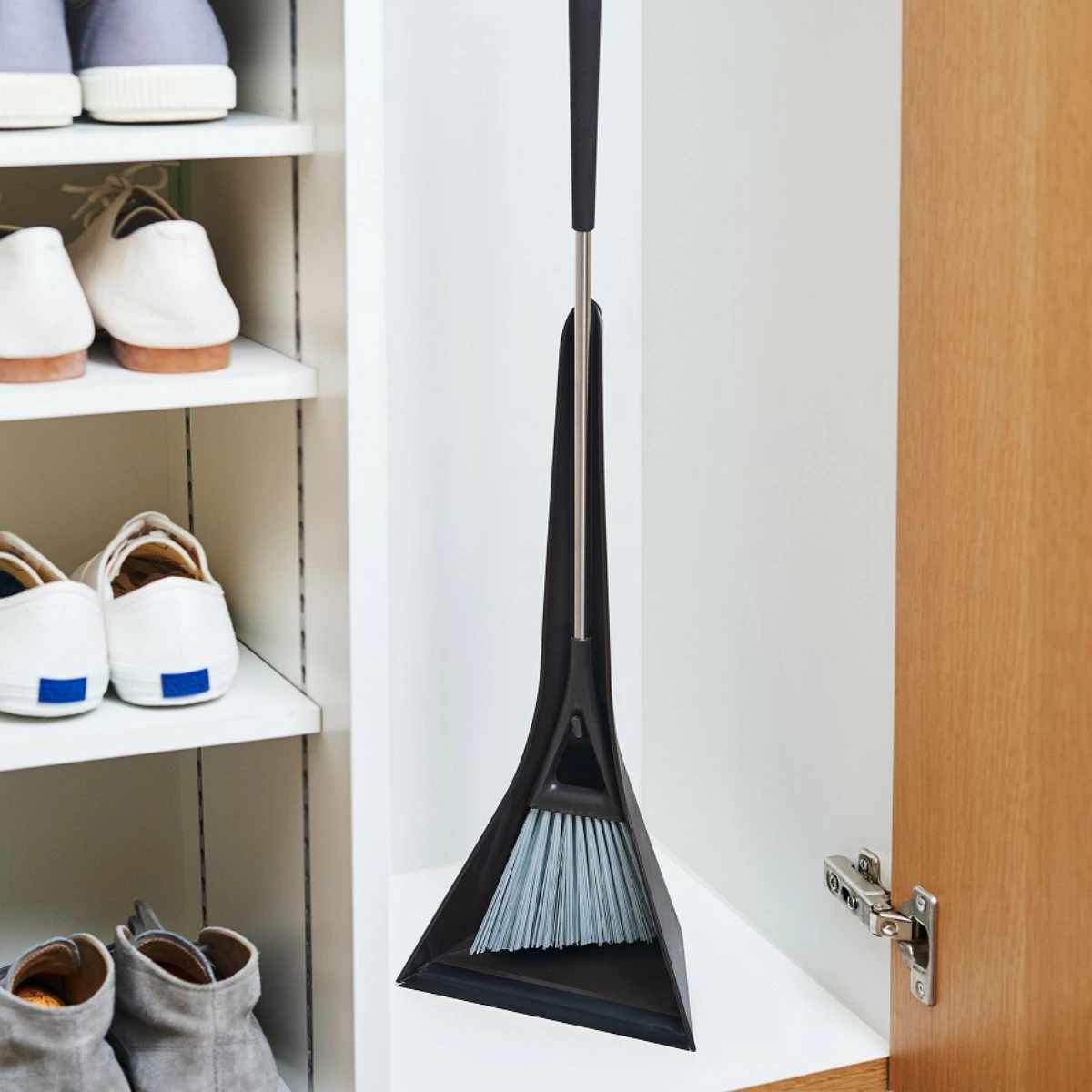 スマートなデザインで空間に馴染む ほうき&ちりとりセット