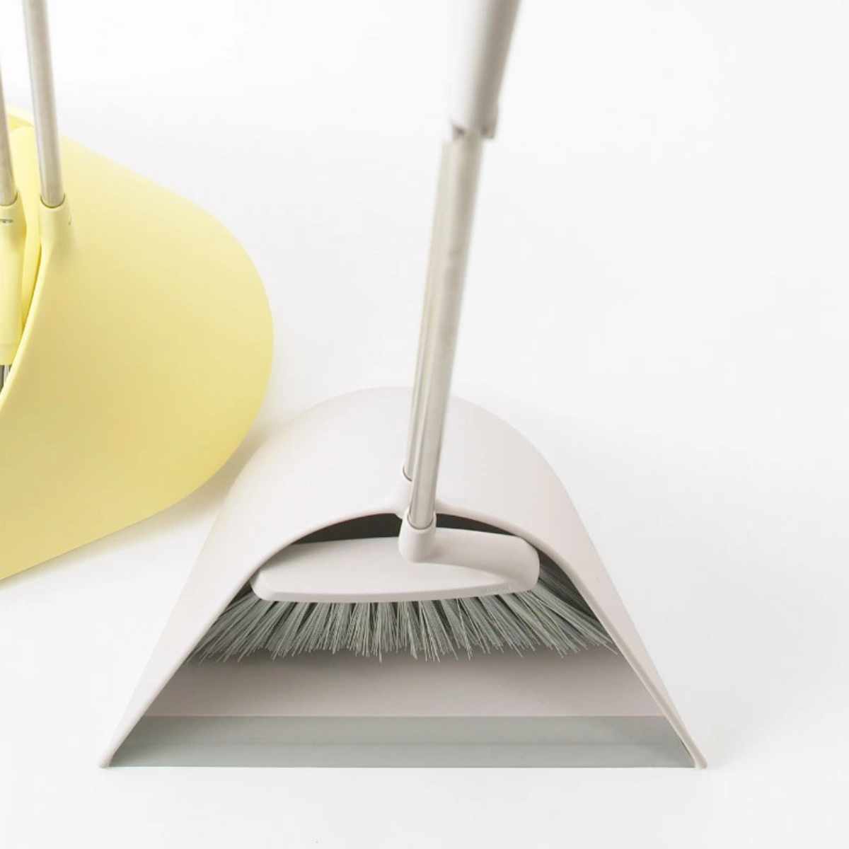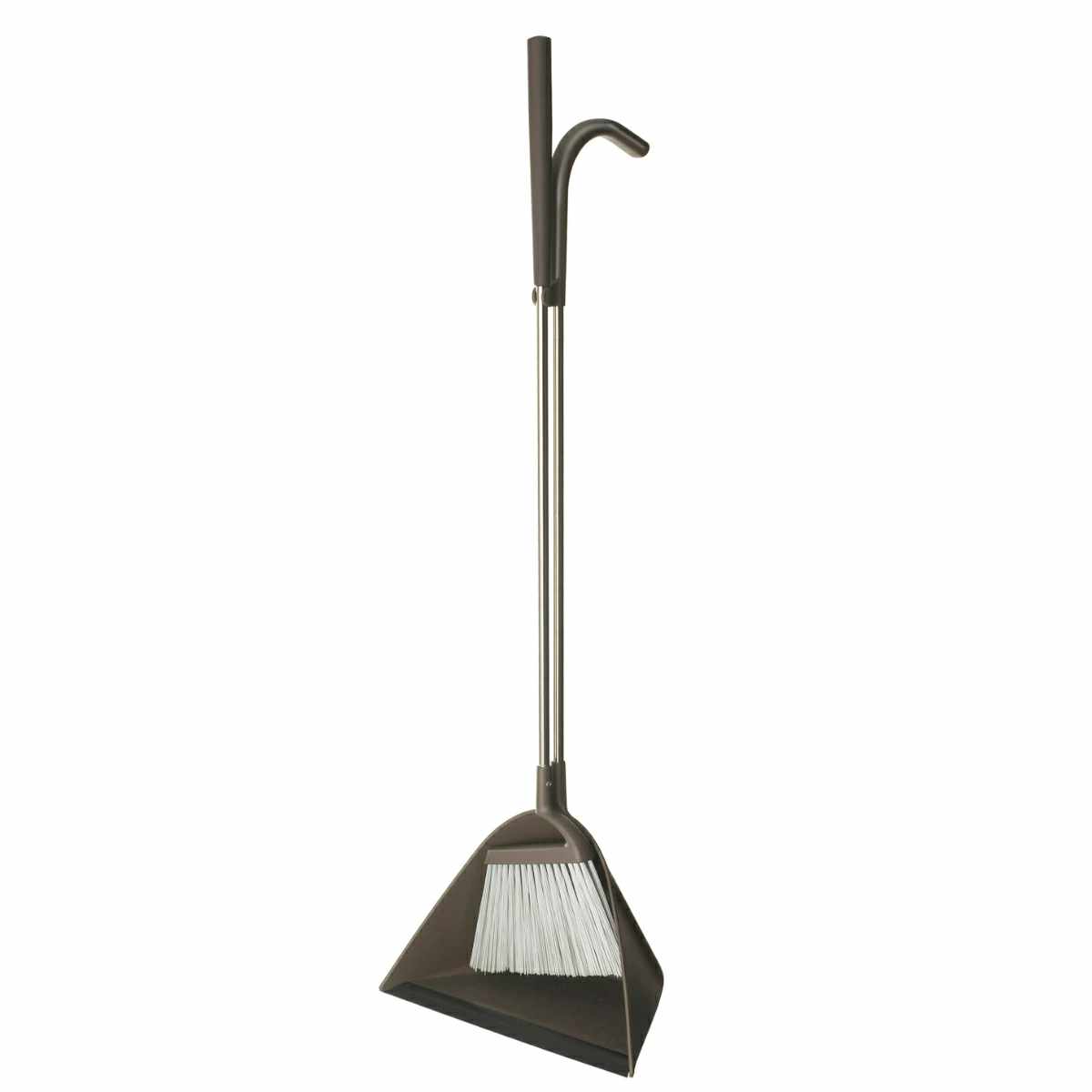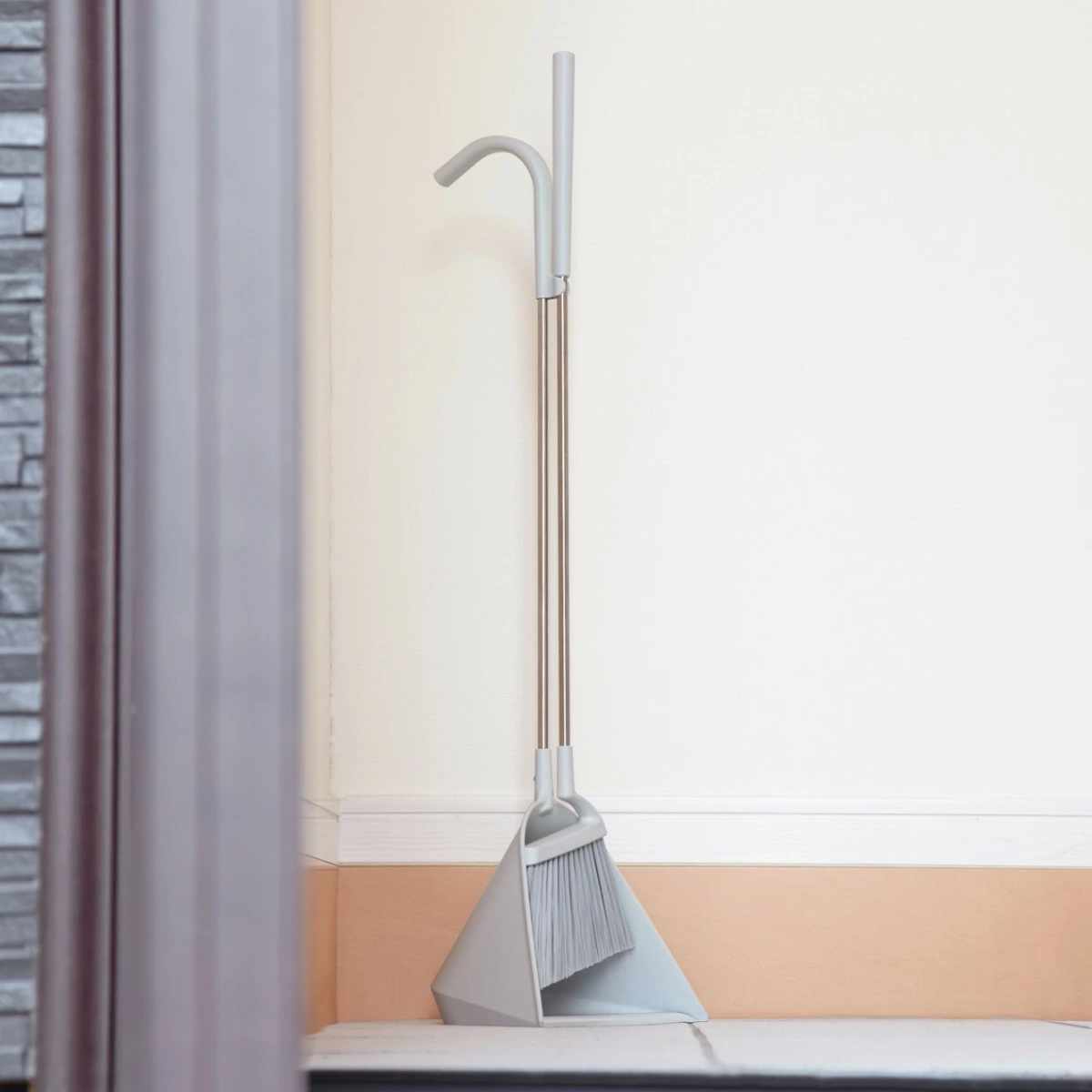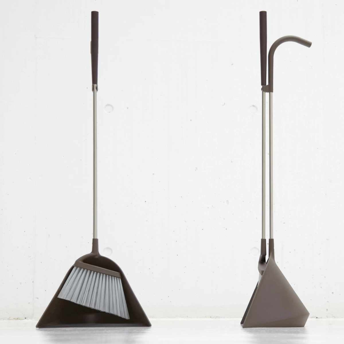 ほうきとちりとりがセットで自立し、玄関やガレージなどよく使うところにスッキリと収まるデザインです。オフィスやお店などでも違和感なく置いておけます。