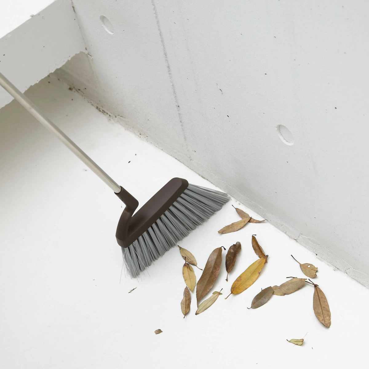 掃きにくい角の場所もきれいに掃けるブラシ形状です。適度なコシとしなりのある毛で、ゴミを掃き取ります。