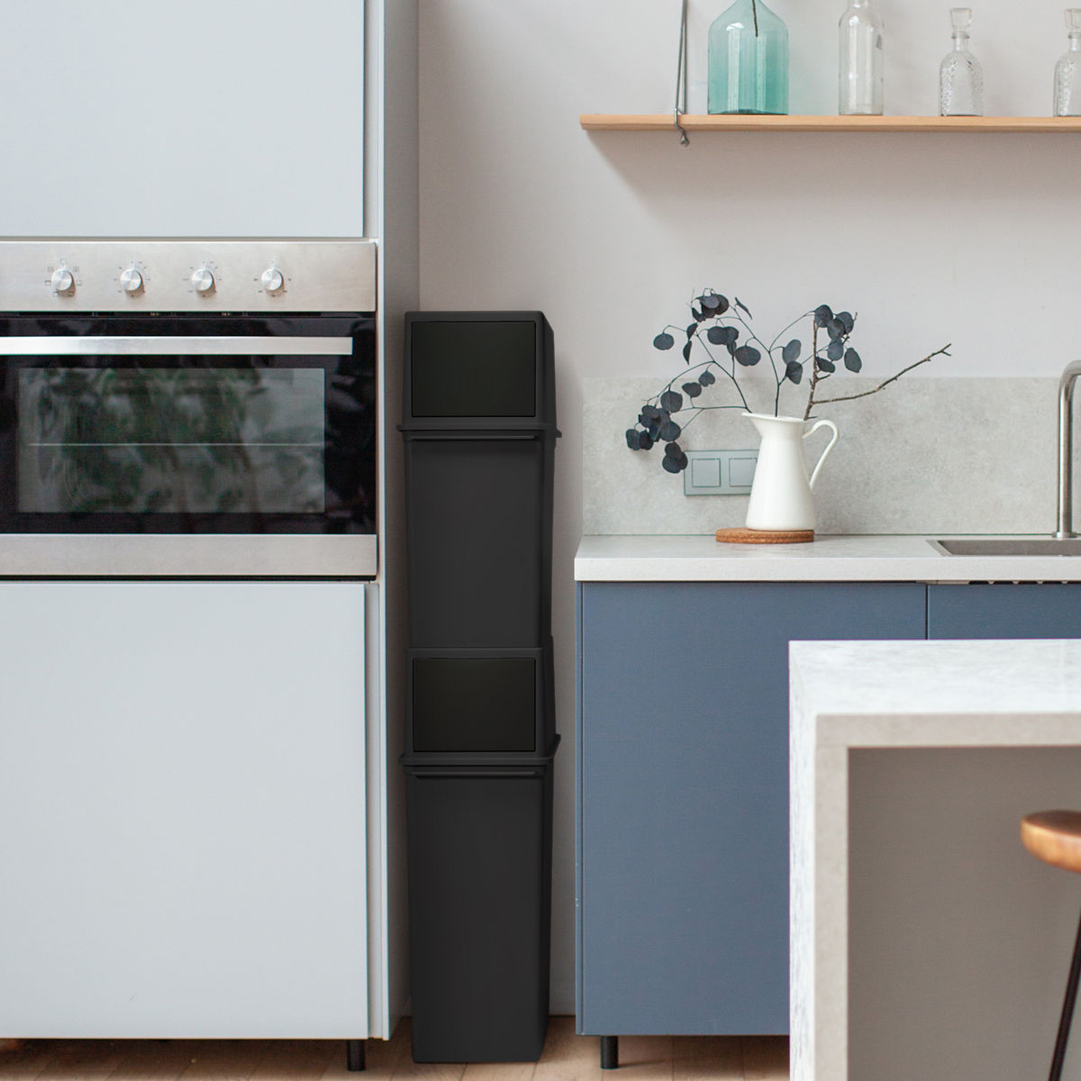 フタの上面に溝があるので、スタッキングが可能です。縦のデッドスペースを有効活用して、省スペースでの分別ができます。