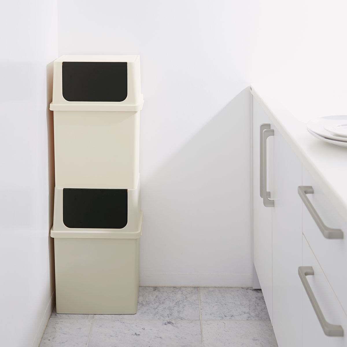 フタの上面に溝があるので、スタッキングが可能です。縦のデッドスペースを有効活用して、省スペースでの分別ができます。