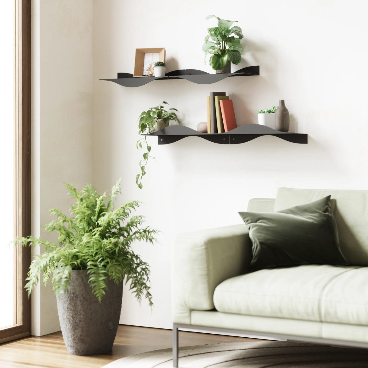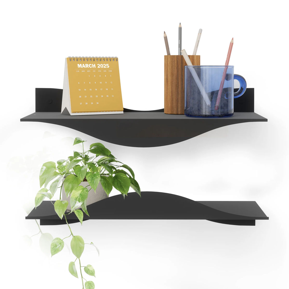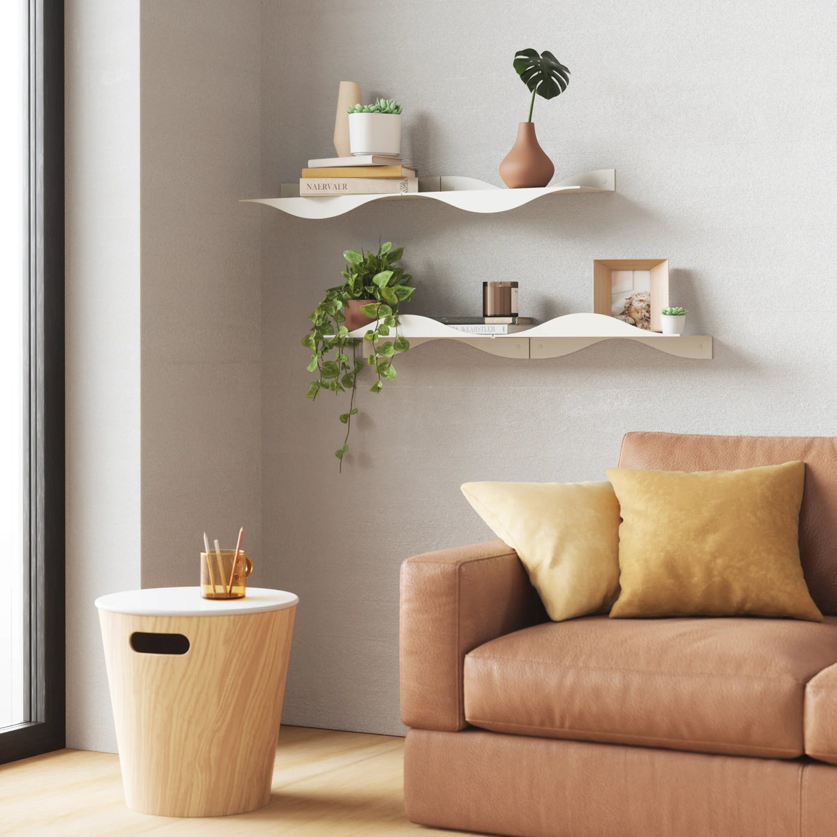 複数連結して取り付けられるため、自分好みのディスプレイをお楽しみいただけます。本や小さな植物、お気に入りの雑貨などを飾ることで、空間に個性と彩りをプラスします。