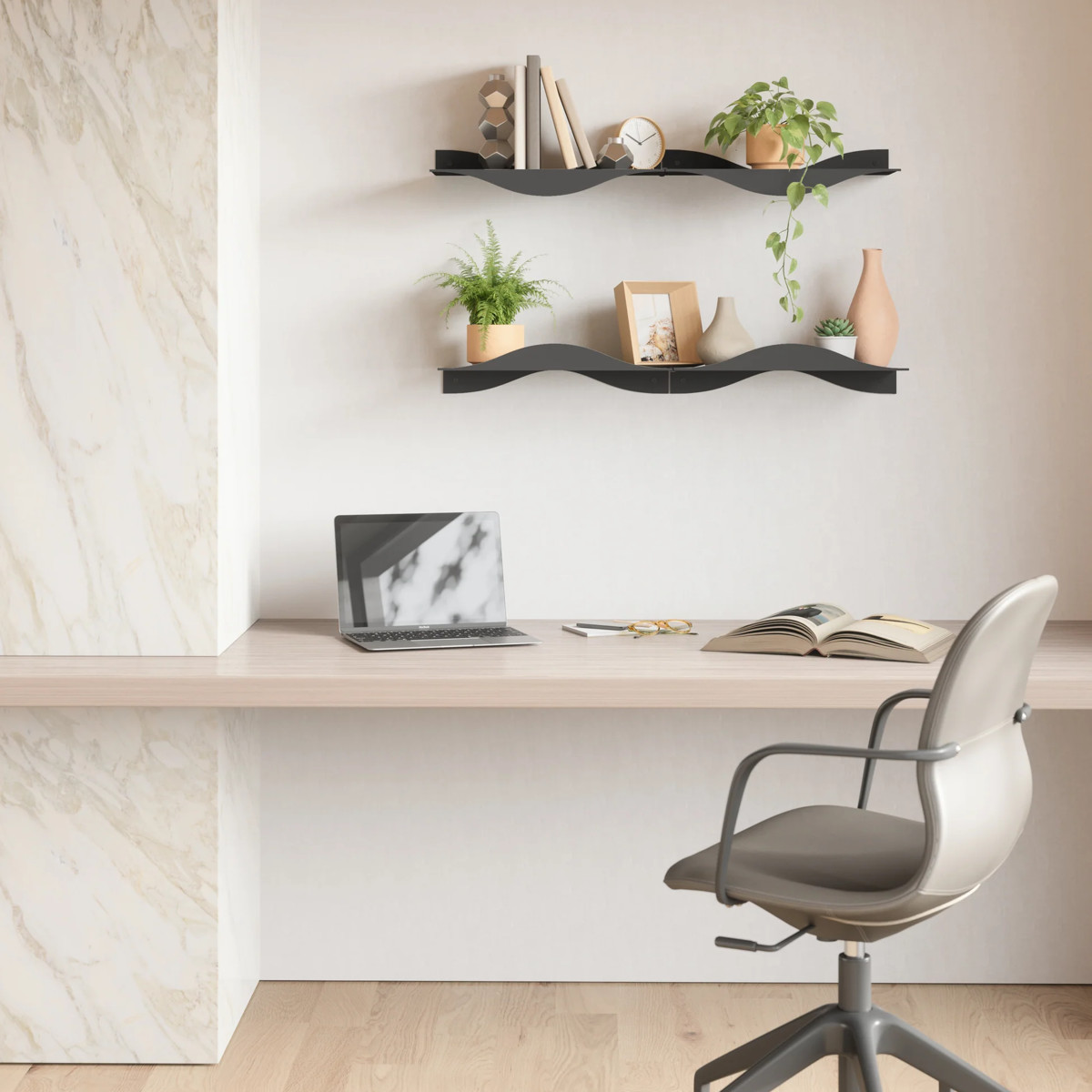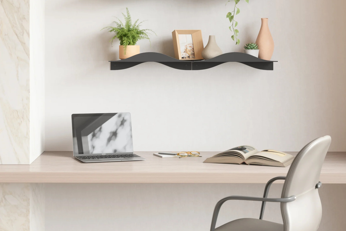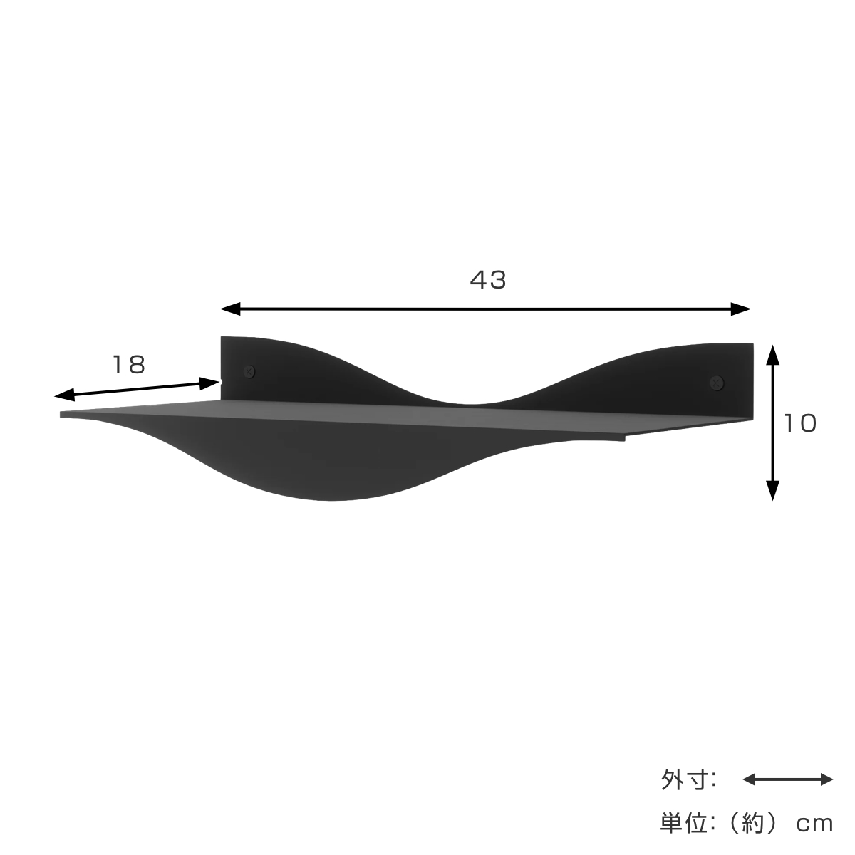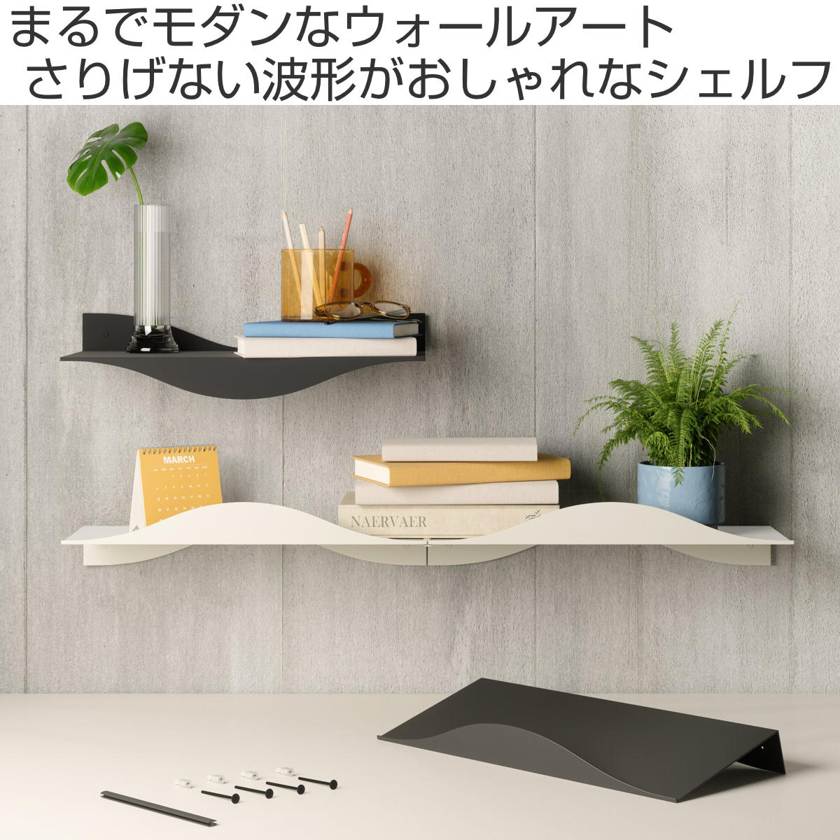 波デザインが特徴のウォールシェルフ【同色2個組】