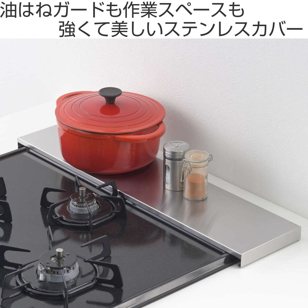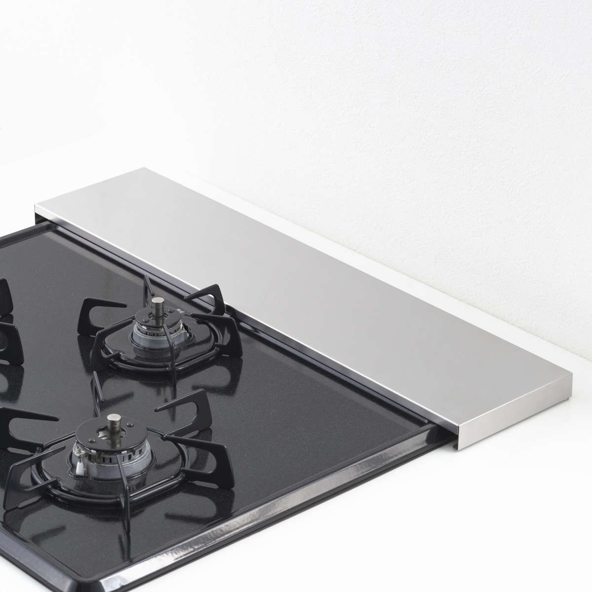 フラットな天面で調味料や鍋のフタをサッとちょい置きでき、耐荷重10kgのしっかりした強度で重めの調理器具も安心して置けます。コンロ奥のスペースを有効活用でき、調理中の作業効率が自然と上がります。