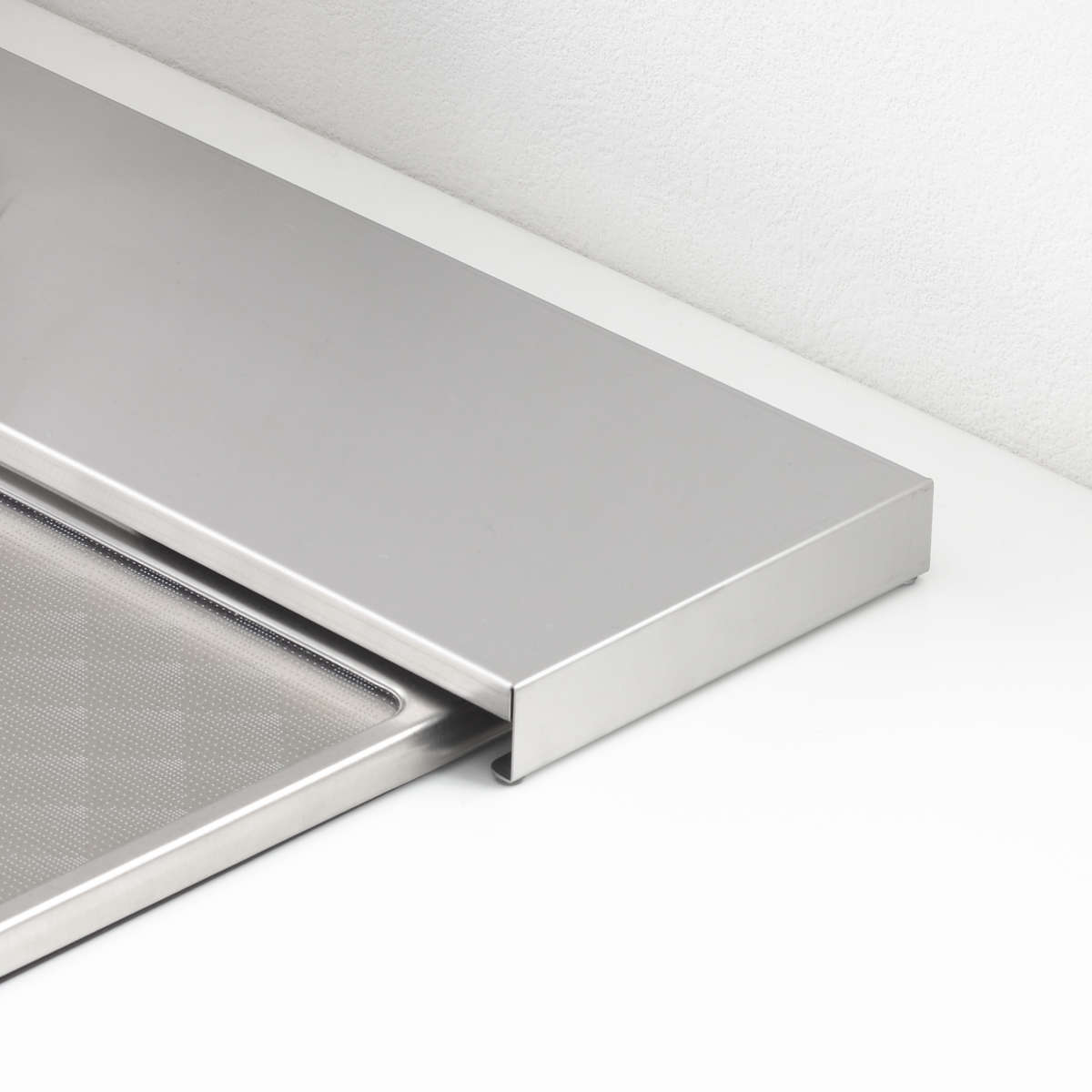 油はねや食材の落下を防ぐステンレス製排気口カバーです。一般的な2~3口のビルトインコンロに対応し、排気口まわりを清潔に保ちます。圧迫感を抑えた低めのフォルムと、どんなキッチンにも馴染むシンプルなデザインが特徴です。