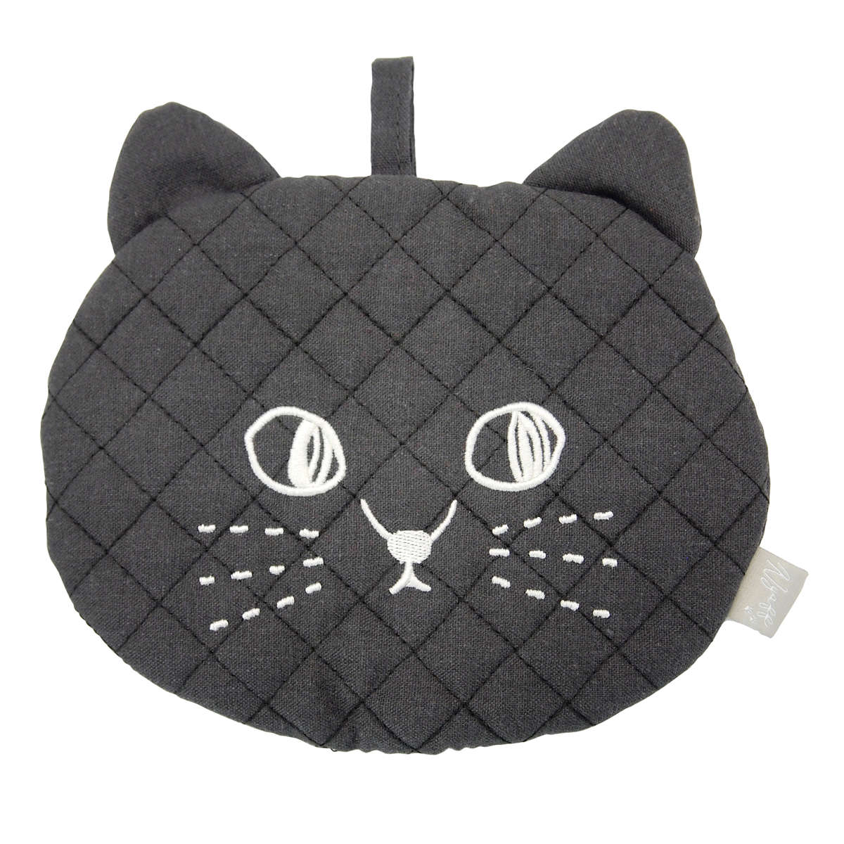 ミトン にゃふにゃふ フェイス型 キルト なべつかみ ( 鍋つかみ キッチンミトン キルト生地 猫 ねこ フェイス 鍋敷き 鍋掴み 布製 グリルミトン 片手 左右兼用 鍋蓋 鍋ふた なべしき キッチン かわいい ) 【チャコールグレー】