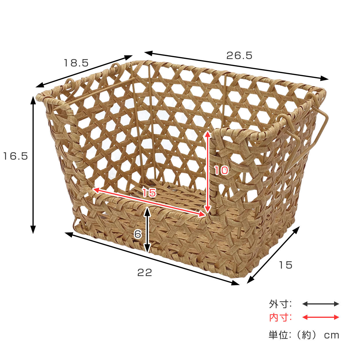 関連キーワード:スタッキング 重ねられる 洗面所 ランドリーバスケット 天然素材風 竹籠風 竹カゴ風 水に強い ポリエチレン 水洗いできる お手入れ簡単 水洗いOK 水洗い可能 籠 収納カゴ 収納バスケット ケース リビング収納 インテリア 見せる収納 小物ケース 収納用品 食品ストック 食品ストッカー 台所 ストック インテリア雑貨 プレゼント オシャレ かわいい カワイイ 可愛い おすすめ オススメ 人気 使いやすい シンプル キッチン収納 整理整頓 清潔 衛生的 安心 調味料 リビング 洗剤 食器 食品 お菓子 果物 入れ ナチュラル ダイニング 鉢カバー 持ち手付き 約 幅26 幅27 奥行18 奥行19 高さ16 高さ17 cm センチ