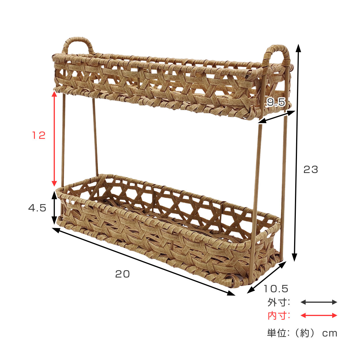 調味料ケース バンブス フェイクPE焼竹 キッチンラック ( 幅28×奥行10.5×高さ23cm カゴ 手編み スパイスラック 収納 水洗い 小物収納 2段 収納かご ラック 小物入れ おしゃれ 丈夫 ハンドメイド 洗面所 )