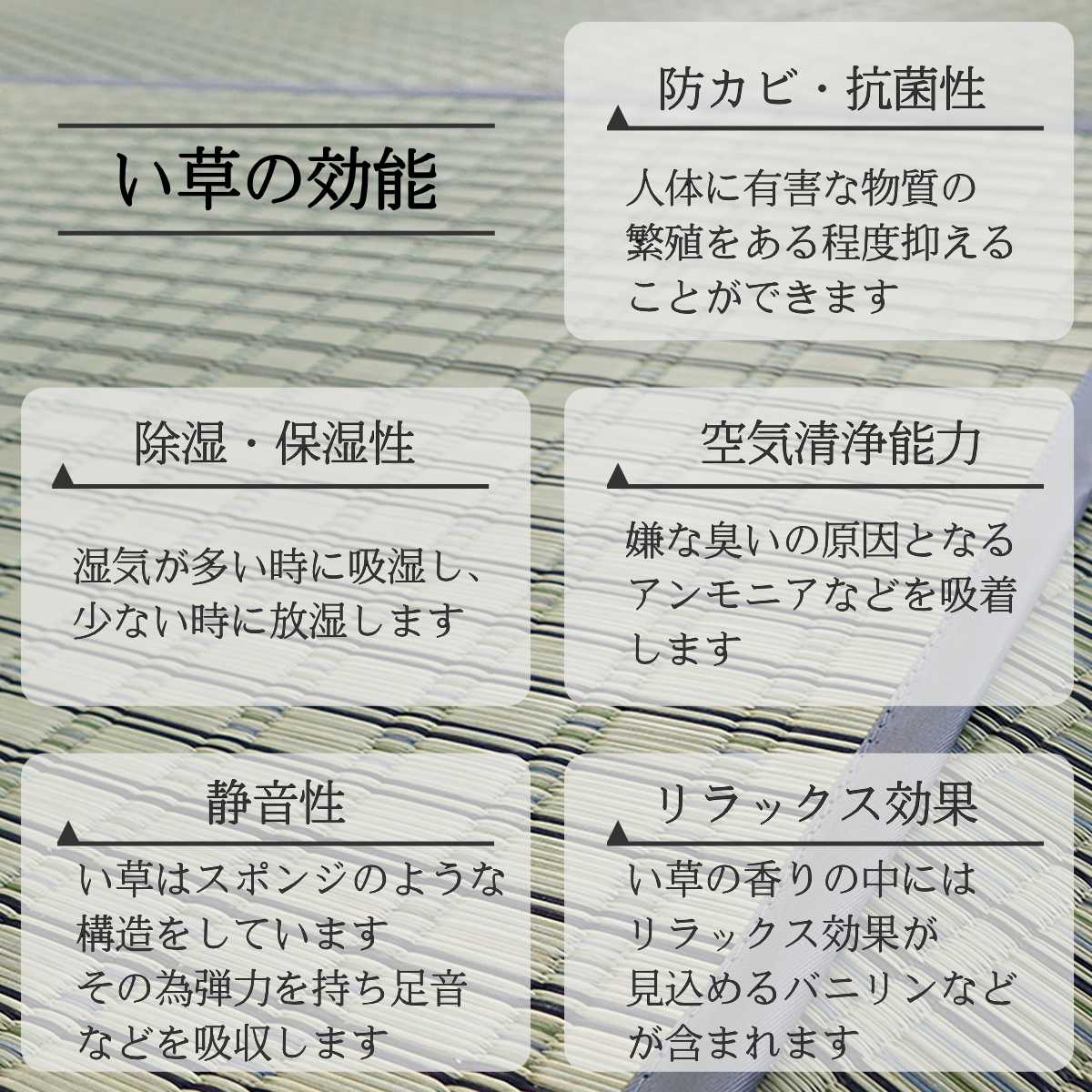リビングや寝室などリラックスしたい場所に敷くことで、身体に優しいい草の効能が発揮され、快適な時間をお過ごしいただけます。