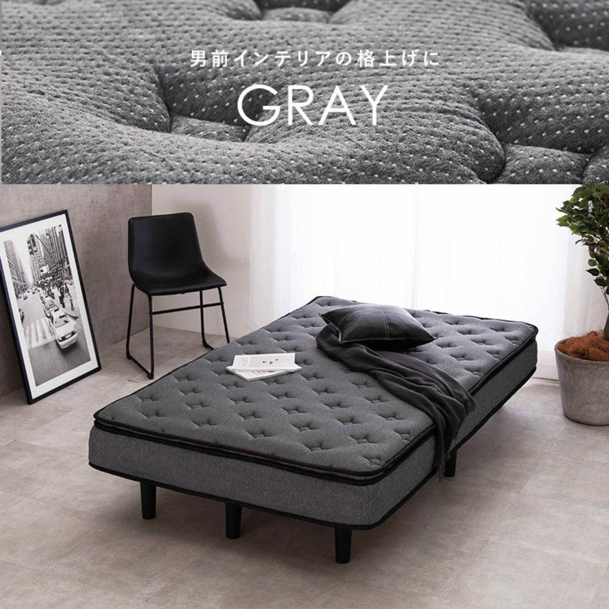 マットレスには、体型や寝姿勢の凹凸に合わせて点で支えるポケットコイルを採用。体にフィットしやすく、自然な寝姿勢をサポートします。さらに、コイル同士の接触が少ない「並列配列」を採用しているため、通気性と耐久性にも配慮された構造です。