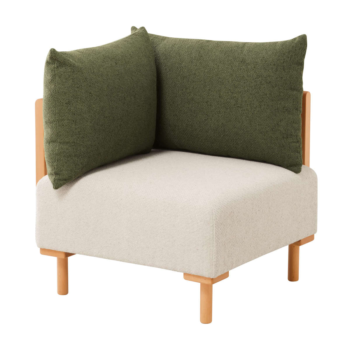暮らしに合わせてシリーズで自由な組み合わせができるソファです。コンパクトなサイズ感と、お部屋に統一感と上品さをもたらすカラーリングが魅力的です。フレームに天然木ビーチ材を使用したデザインは、どこか懐かしさと新鮮な印象を与えます。