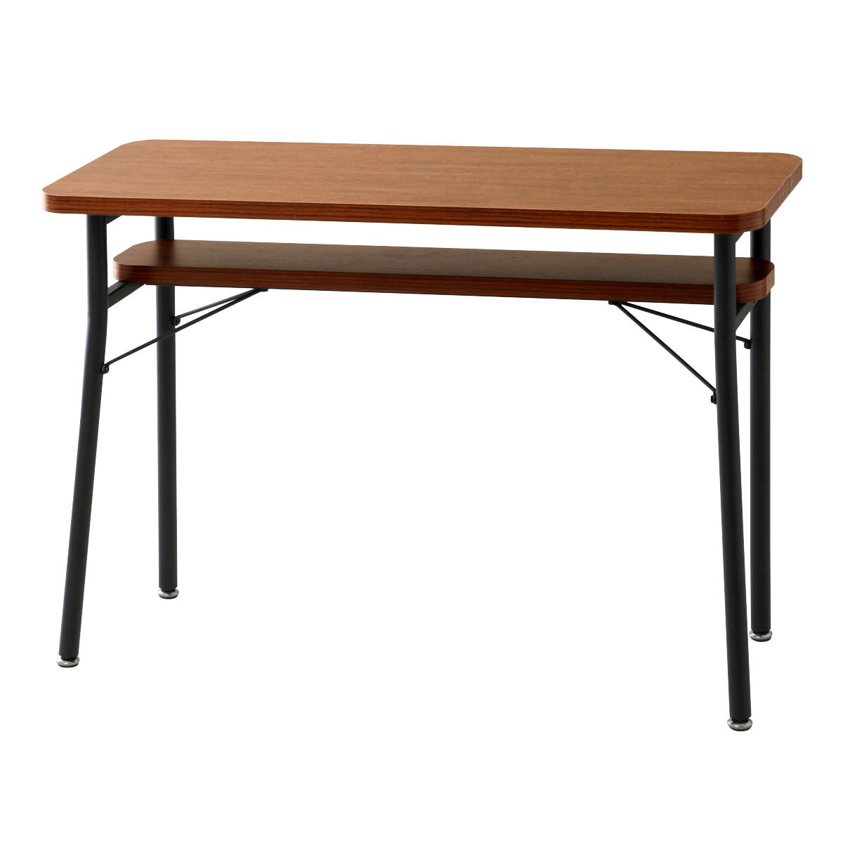 カウンターテーブル 幅100cm 棚付き おしゃれ ダイニングテーブル ミルド Mash ( テーブル カウンター 奥行35cm スリム キッチンカウンター 作業台 収納付き リビング学習 ハイテーブル ハイタイプ 省スペース スチール脚 ) 【ブラウン】