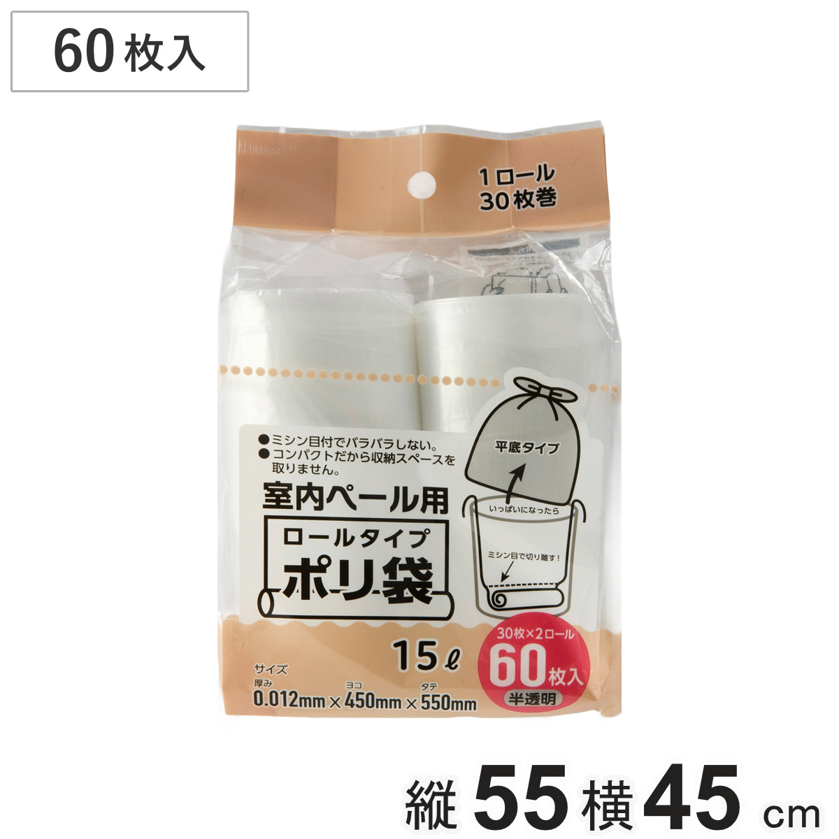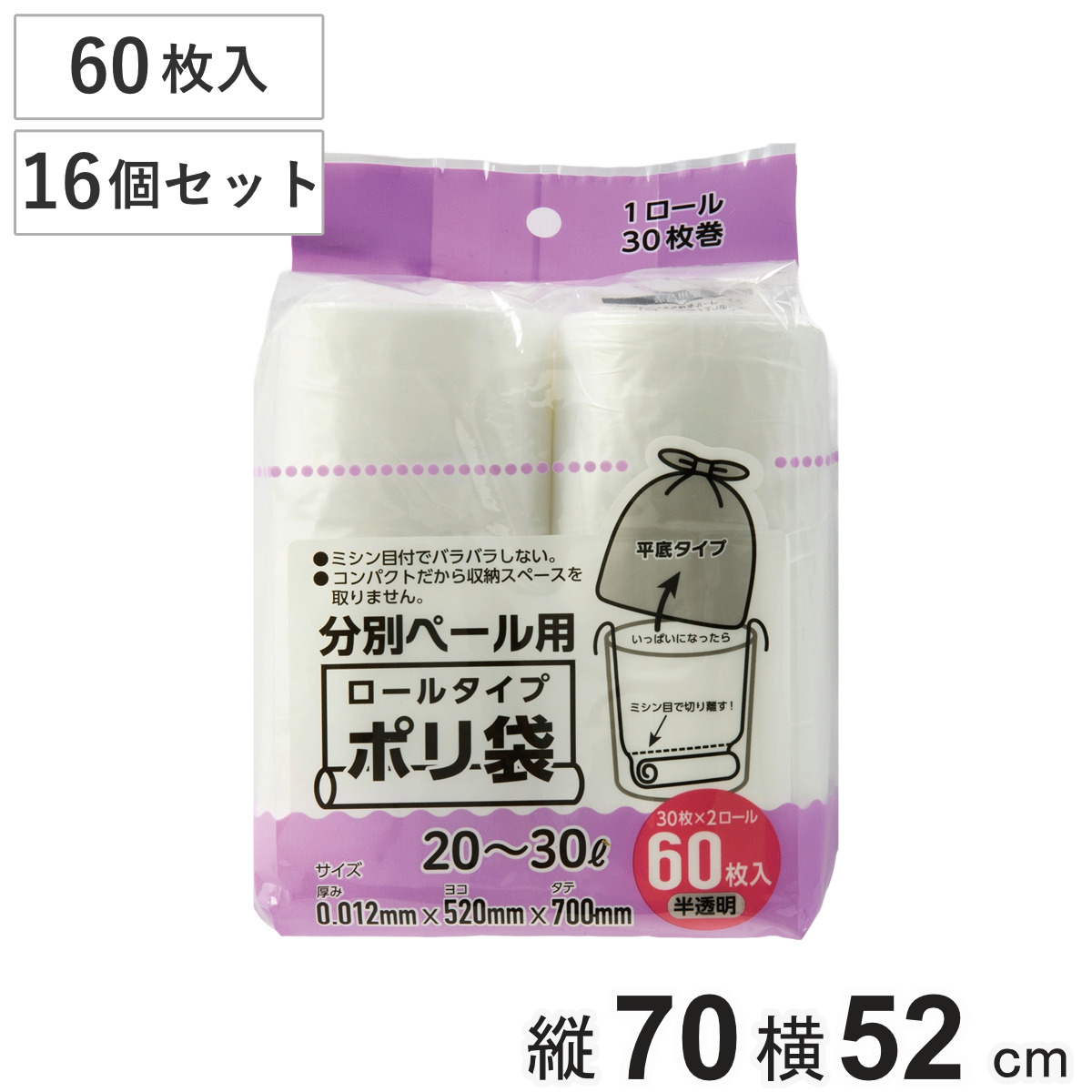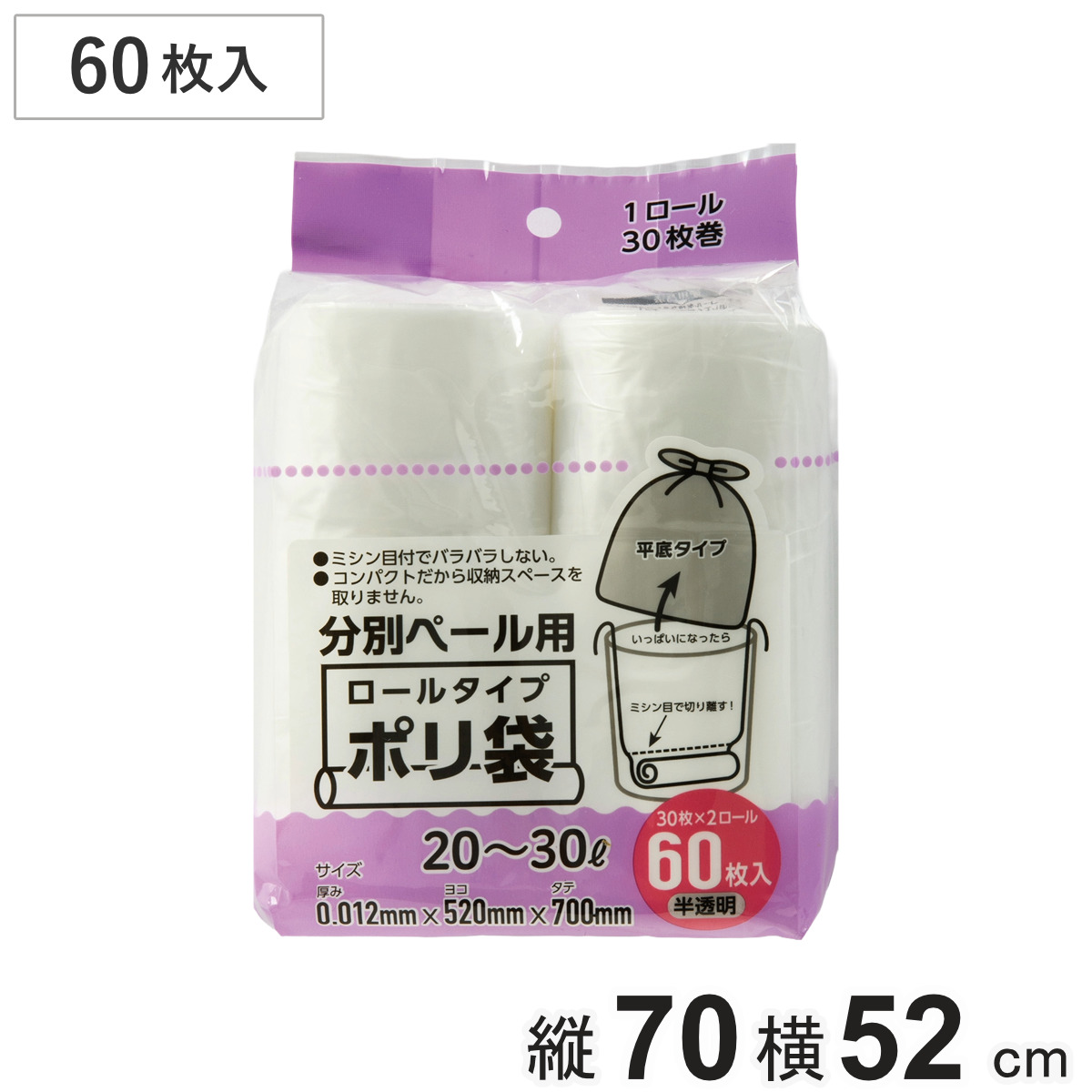 ポリ袋 20~30L 60枚入り ロールタイプ 半透明 ミシン目付き ( ゴミ袋 ロール 30枚 2ロール入 20L 30L コンパクト 便利 ゴミ箱用 常備品 ゴミ箱 ごみ箱 ごみ入れ ストック 生活雑貨 ポリエチレン )