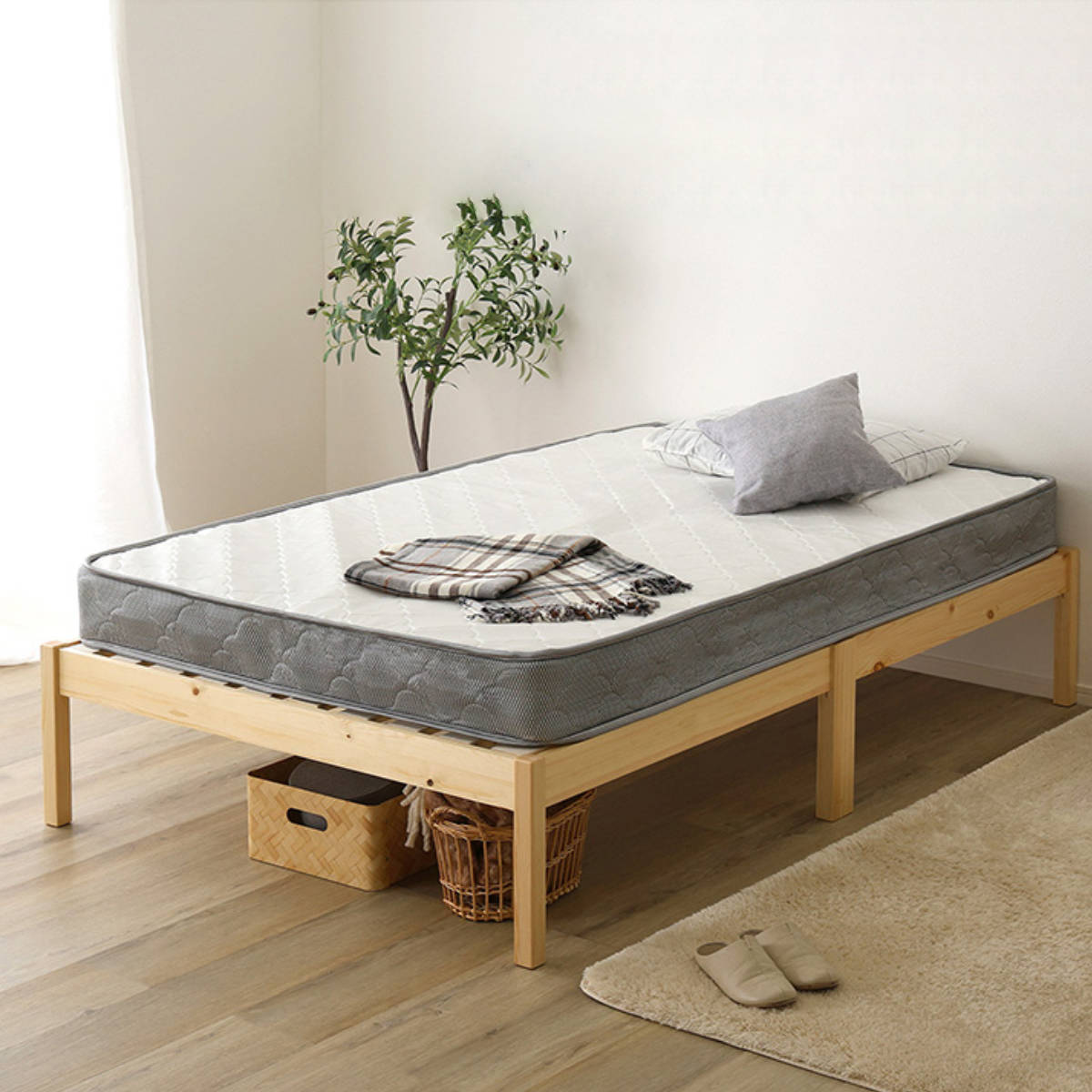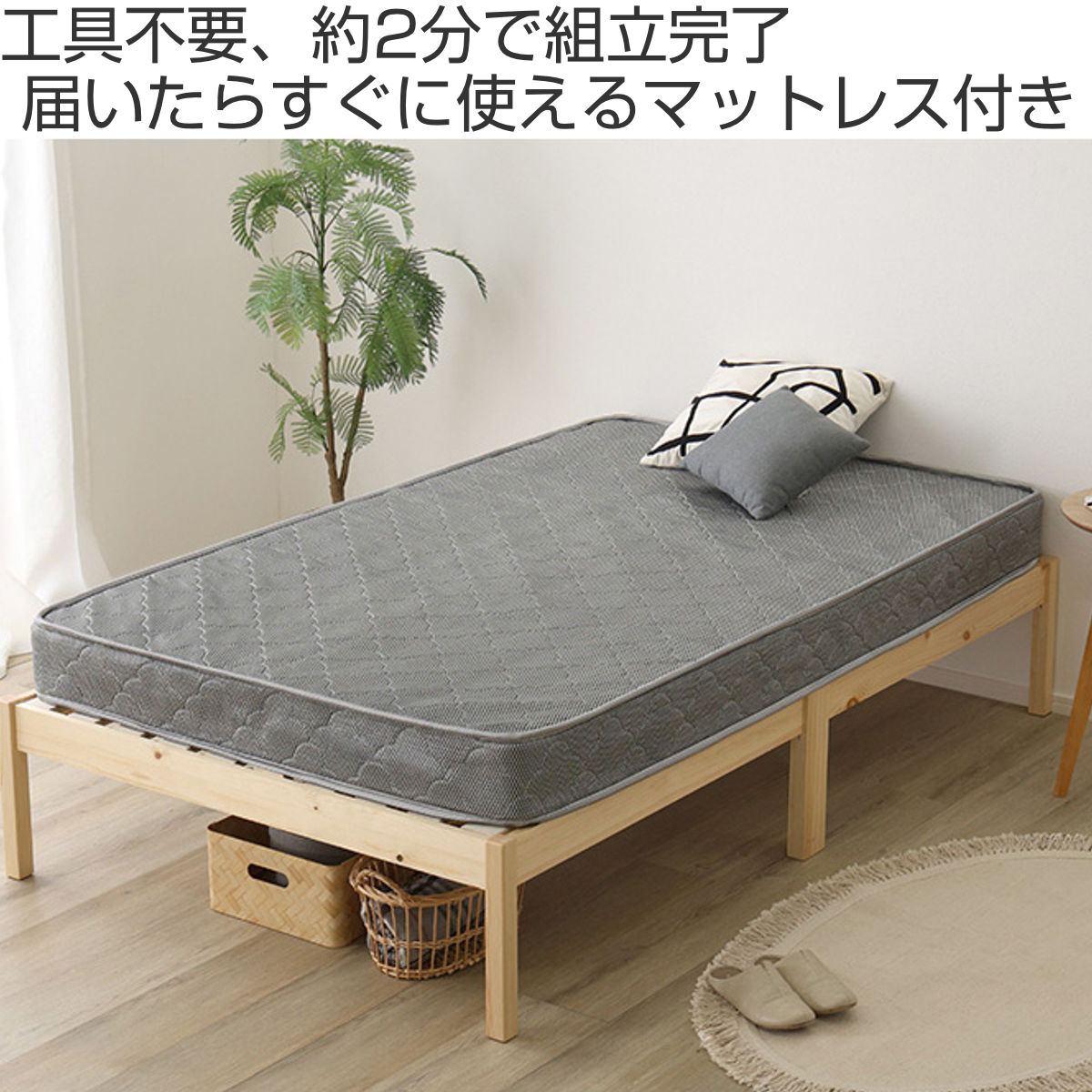 組立簡単ベッド ハイタイプ シングル ボンネルコイルマットレス付き ( ベッド 組立簡単 天然木 高耐荷重 マットレスセット 2分で完成 耐荷重300kg 工具不要 お掃除ロボット対応 ) 【ナチュラル×ホワイト】