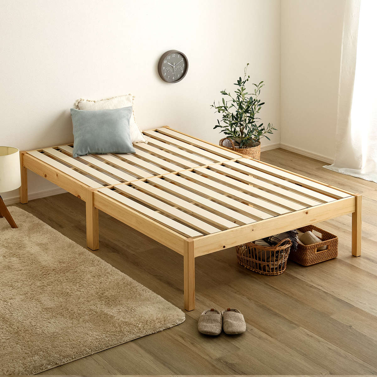 工具やネジを使わず、フレームを差し込み、すのこを木ダボにはめるだけの簡単設計。ベッドフレームが約2分で組み立て完了します。マットレスがセットになっているので、別々に選ぶ手間がなく、届いた日からすぐに快適な眠りを始められます。