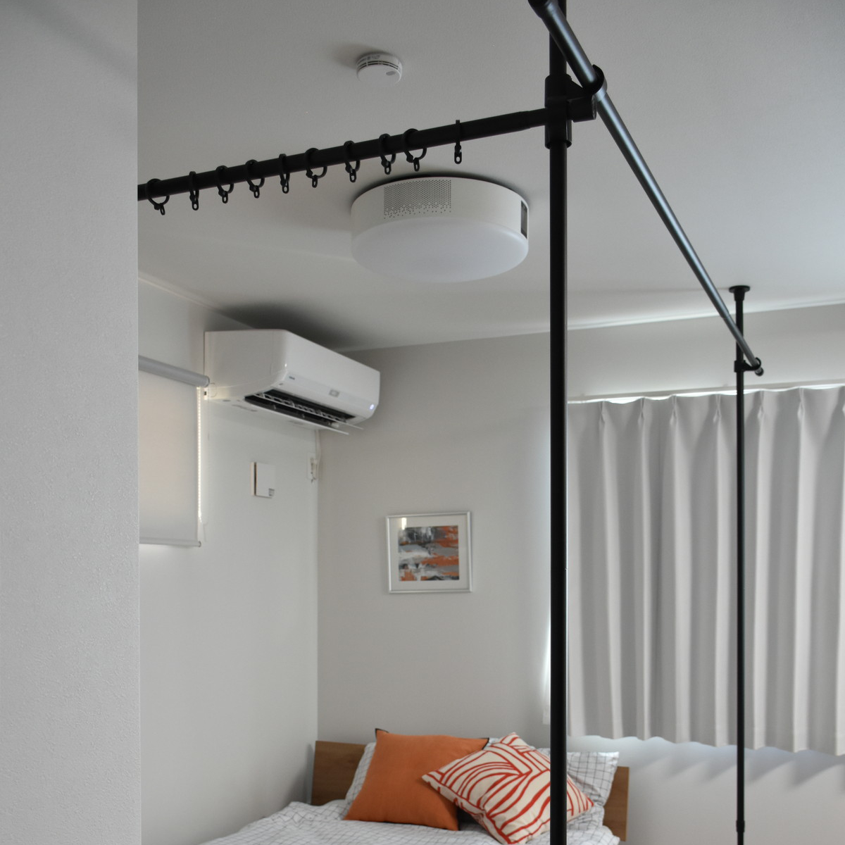 ●カーテンフックを引っ掛けるだけですぐにお部屋を仕切れます。