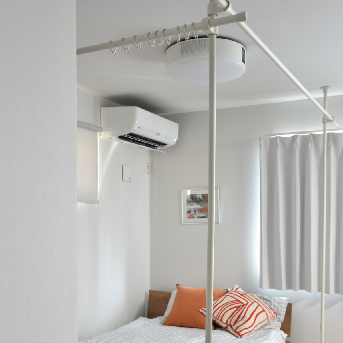 設置場所に合わせて柔軟にサイズ調整ができ、リビング、寝室、玄関、ランドリースペースなど幅広いシーンに対応します。シンプルで圧迫感の少ないデザインは、空間に自然に馴染みながら、プライバシー確保や動線の区切りに最適。「見せない」「仕切る」「整える」を、これ1セットでスマートに実現します。