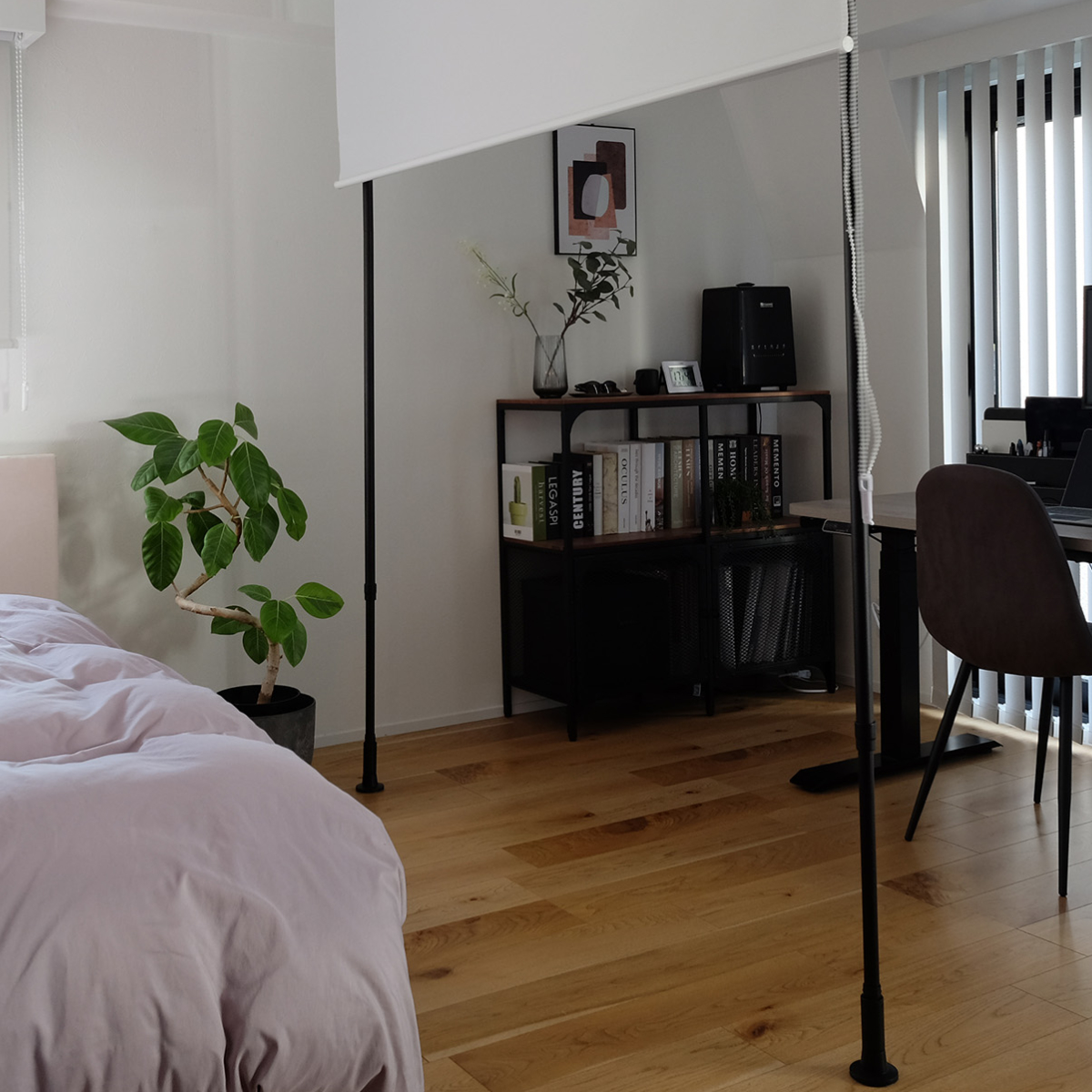 設置場所に合わせて柔軟にサイズ調整ができ、リビング、寝室、玄関、ランドリースペースなど幅広いシーンに対応します。シンプルで圧迫感の少ないデザインは、空間に自然に馴染みながら、プライバシー確保や動線の区切りに最適。「見せない」「仕切る」「整える」を、これ1セットでスマートに実現します。