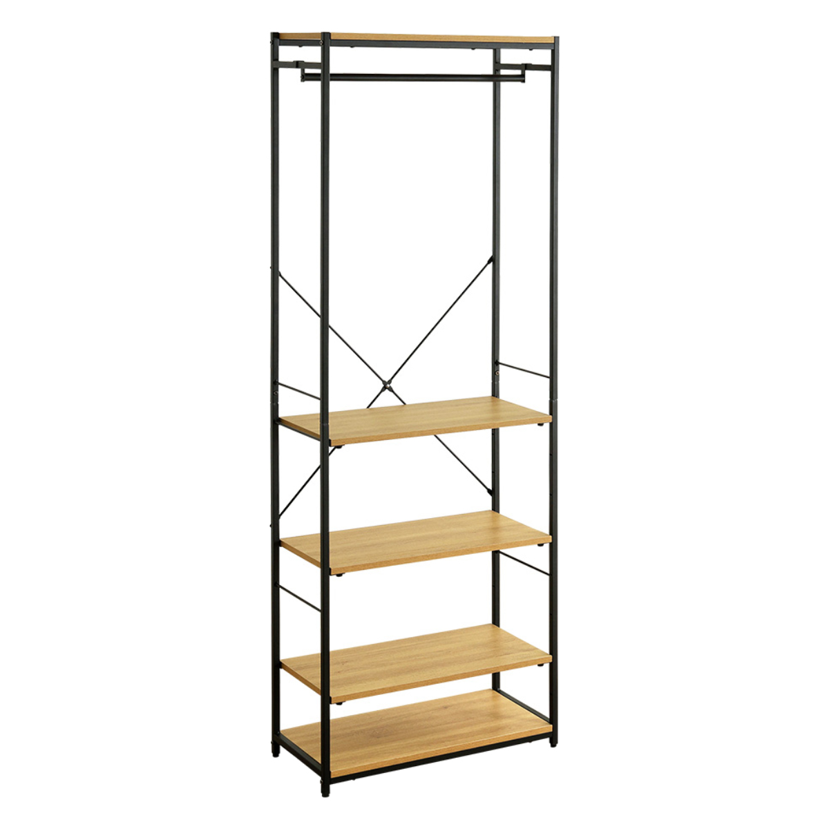 ハンガーラック 幅63.2cm シューズラック付き 木目調 ディスプレイラック ( ラック コート掛け 衣類収納 棚付き ハンガー 棚 ディスプレイ 身支度 コーディネート シャビーオーク ウォールナット ホワイトオーク ) 【シャビーオーク】