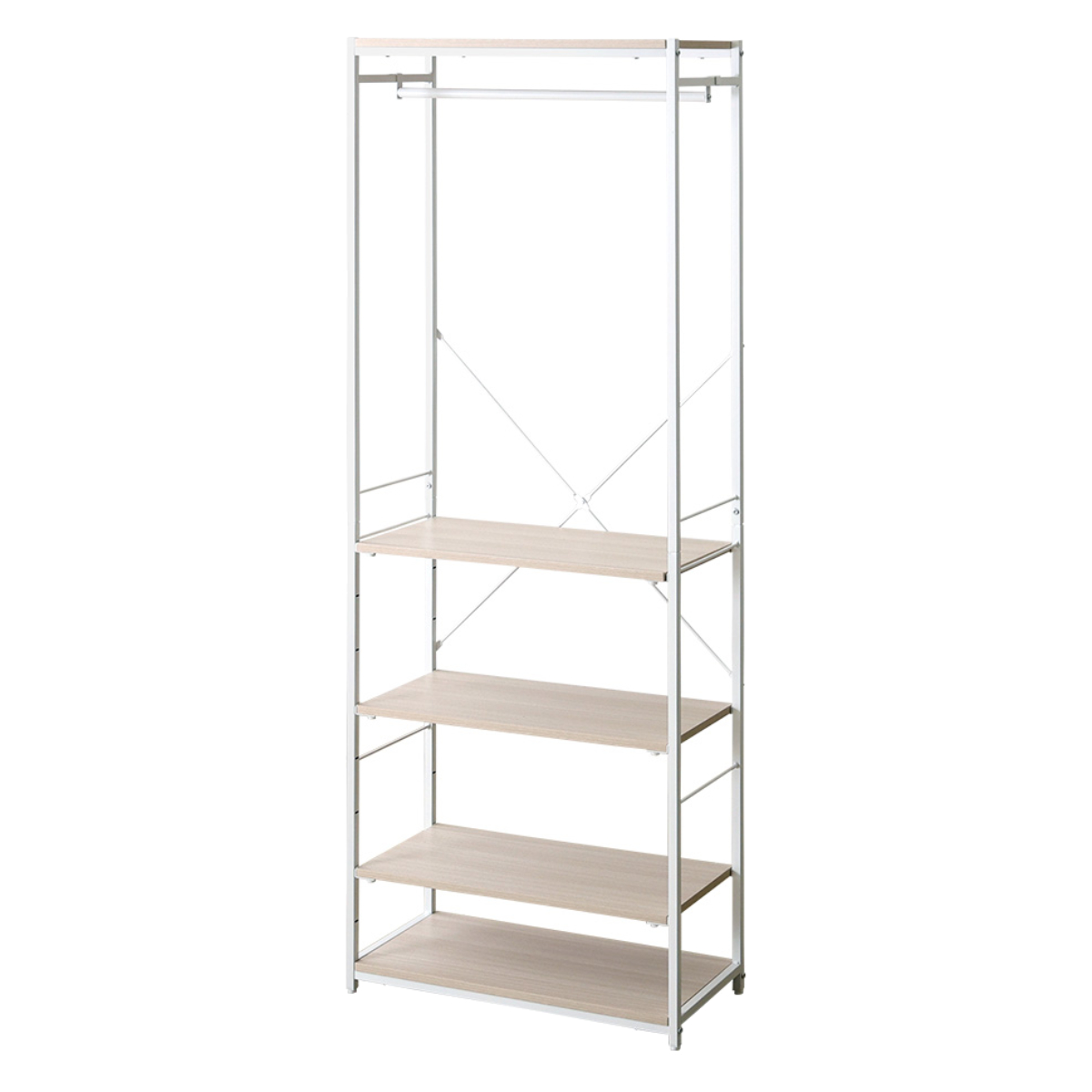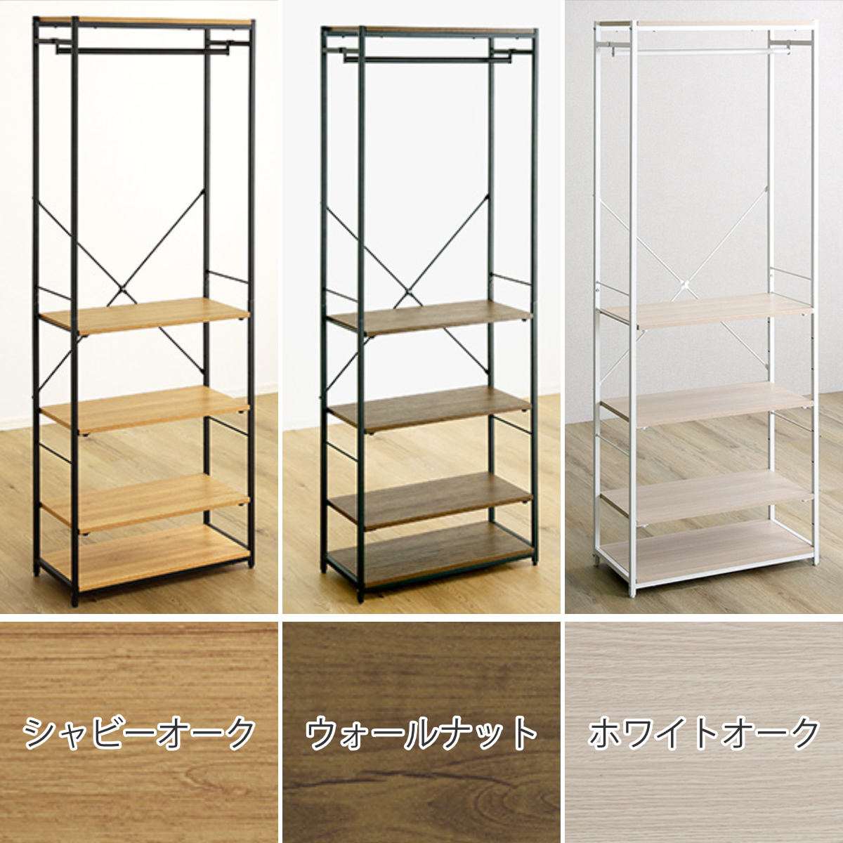 ハンガーラック 幅63.2cm シューズラック付き 木目調 ディスプレイラック ( ラック コート掛け 衣類収納 棚付き ハンガー 棚 ディスプレイ 身支度 コーディネート シャビーオーク ウォールナット ホワイトオーク ) 【ホワイトオーク】