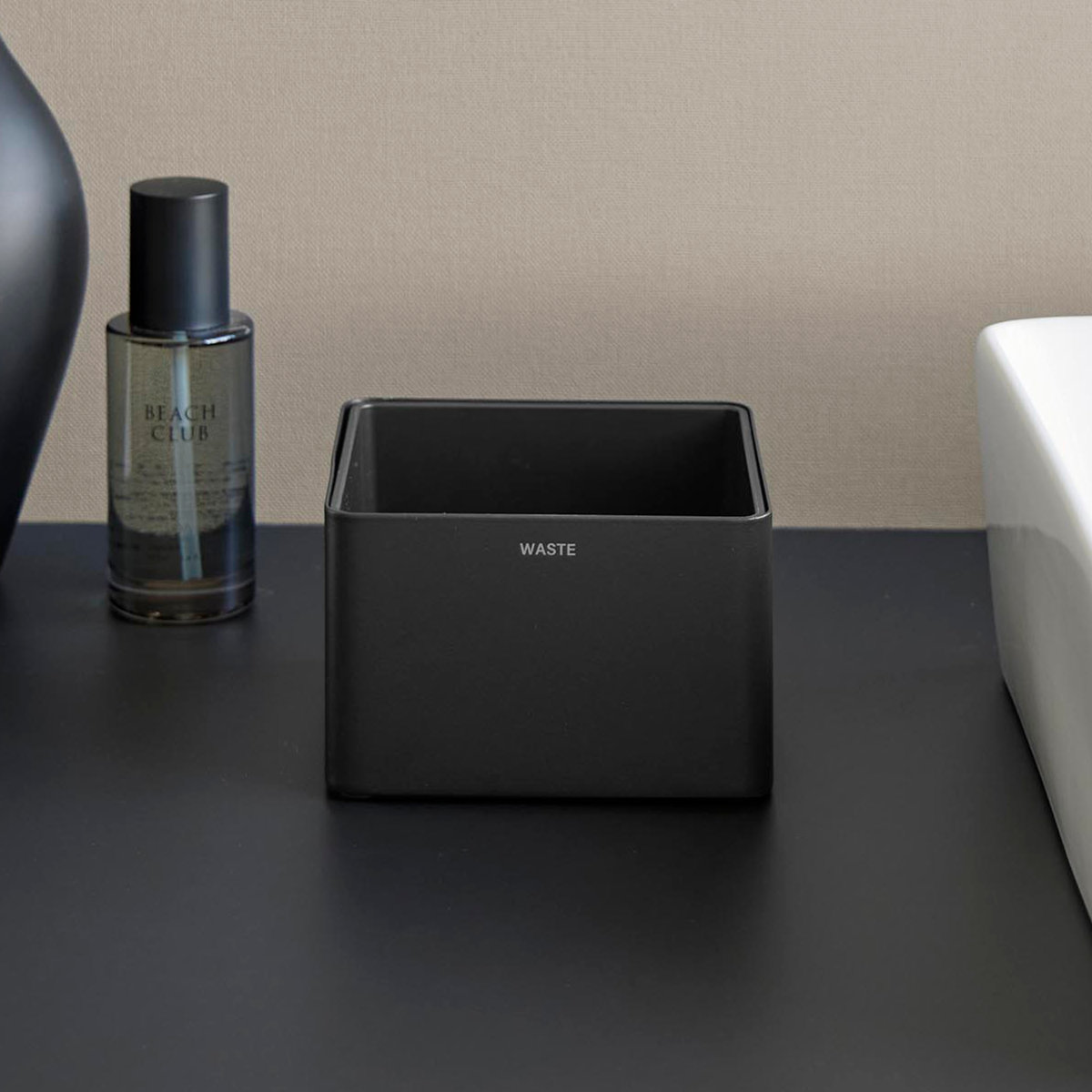 洗面台の横にすっきり置けるコンパクトなゴミ箱は、限られた洗面所でも邪魔になりにくく、コットンやコンタクトレンズのケース、ヘアケア後のちょっとしたゴミを手軽に捨てられます。