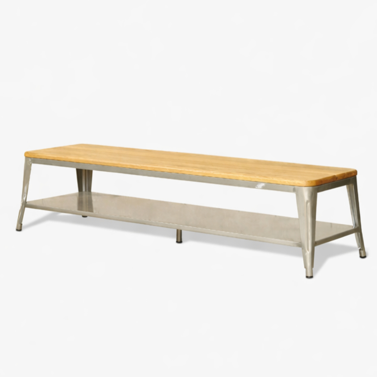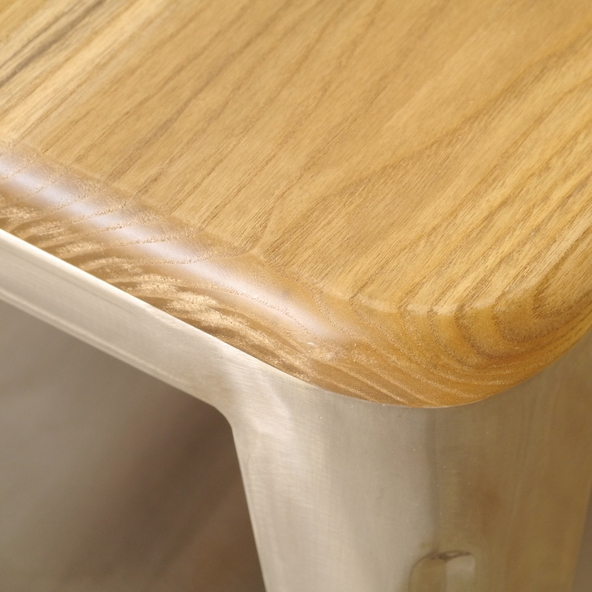 自然の温もりと、無機質な美しさが出会った一台です。無垢材のやさしい木目が空間にぬくもりを添え、スチールフレームが全体を引き締めることで、洗練されたインダストリアルデザインを実現しています。