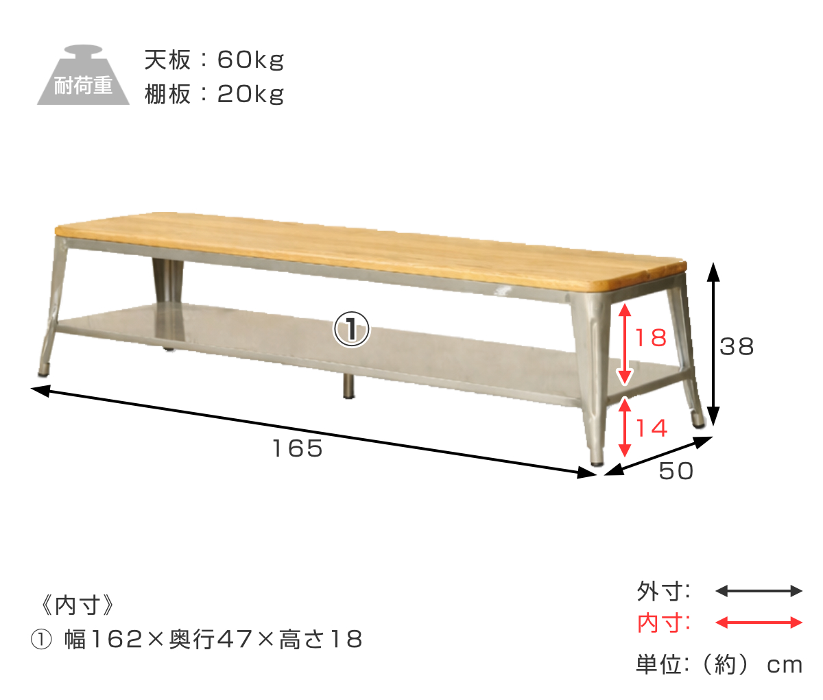 | サイズ | 約 幅165×奥行50×高さ38(cm) |