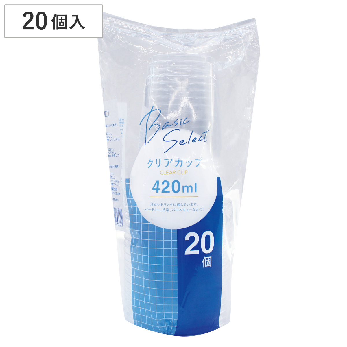 クリアカップ 420ml 20個 ( 使い捨て プラスチック クリア コップ カップ 420ml コールド 20個入り プラスチック容器 プラスチック製 プラスチックコップ BBQ アウトドア パーティー キャンプ )