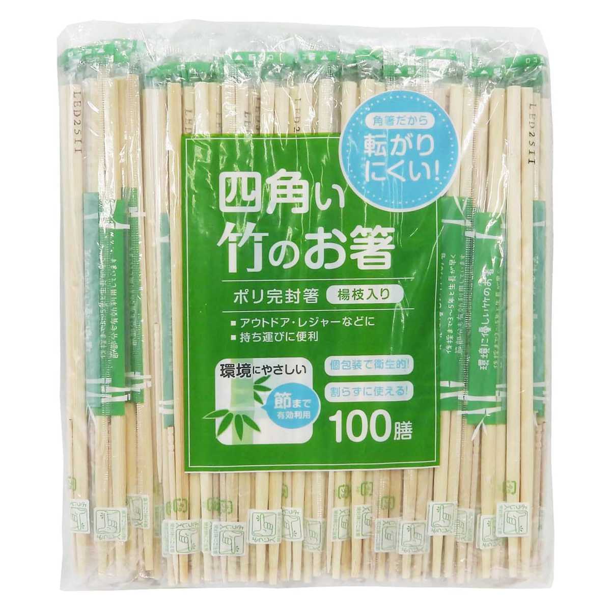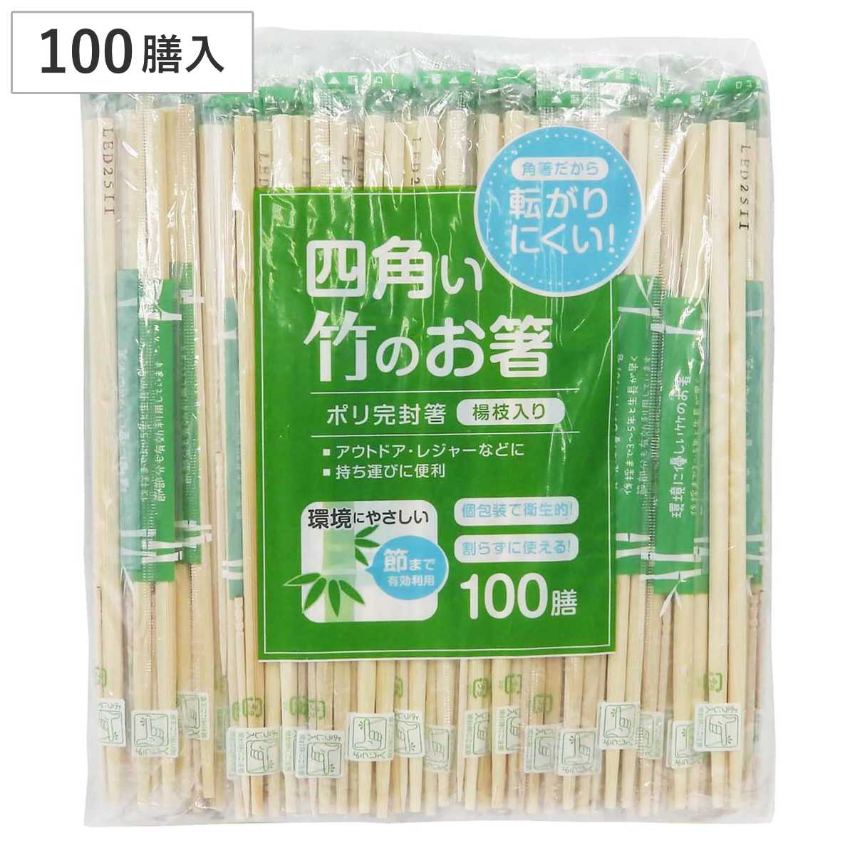 割り箸 ポリ完封箸 竹角 20cm 100膳 ( 割りばし 使い捨て お箸 箸 はし ハシ わりばし 100本入り 竹丸箸 個包装 使い捨て箸 竹材 丸箸 業務用 大容量 )