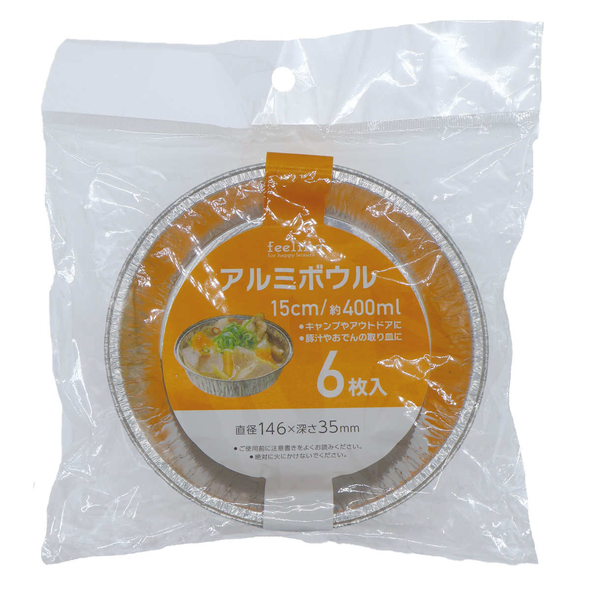 アルミボウル 15cm 400ml 6枚入 ( 使い捨て アルミ 簡易食器 使い捨て容器 アルミ容器 タレ皿 焼肉 豚汁 ボウル 6枚入り 使い捨てボウル 容器 アルミニウム 使い捨てプレート 取り皿 皿 トレー BBQ アウトドア パーティー キャンプ )