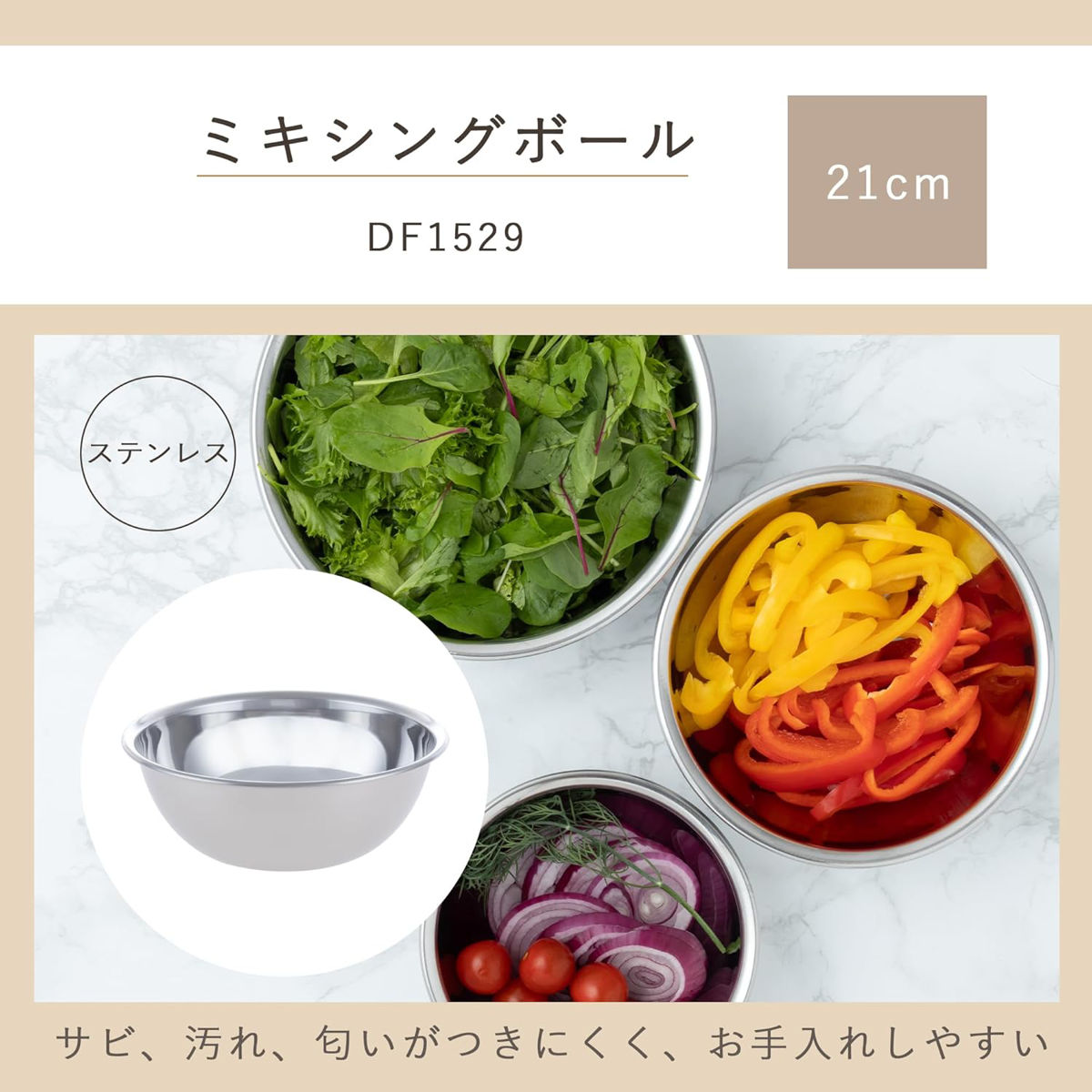ボウル 21cm ステンレス製 NCD ミキシングボール 貝印 ( 調理用ボウル ステンレスボウル 調理器具 21センチ キッチンボウル 調理道具 調理小物 調理雑貨 調理用品 キッチンツール )のレビュー