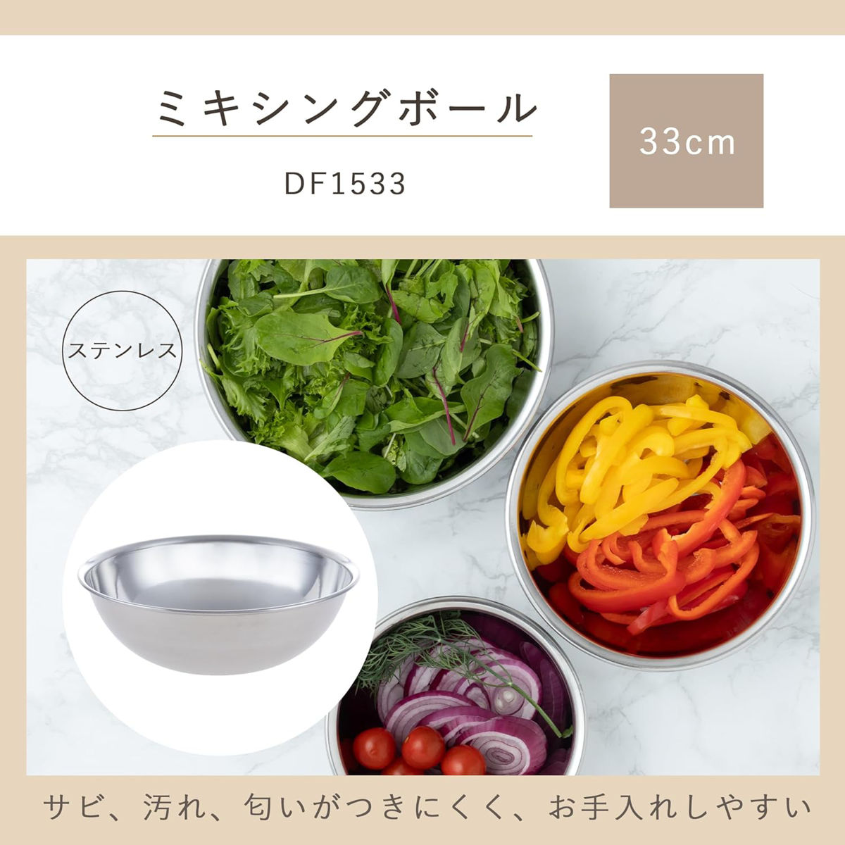 ●耐久性に優れたステンレス製ボウルです。