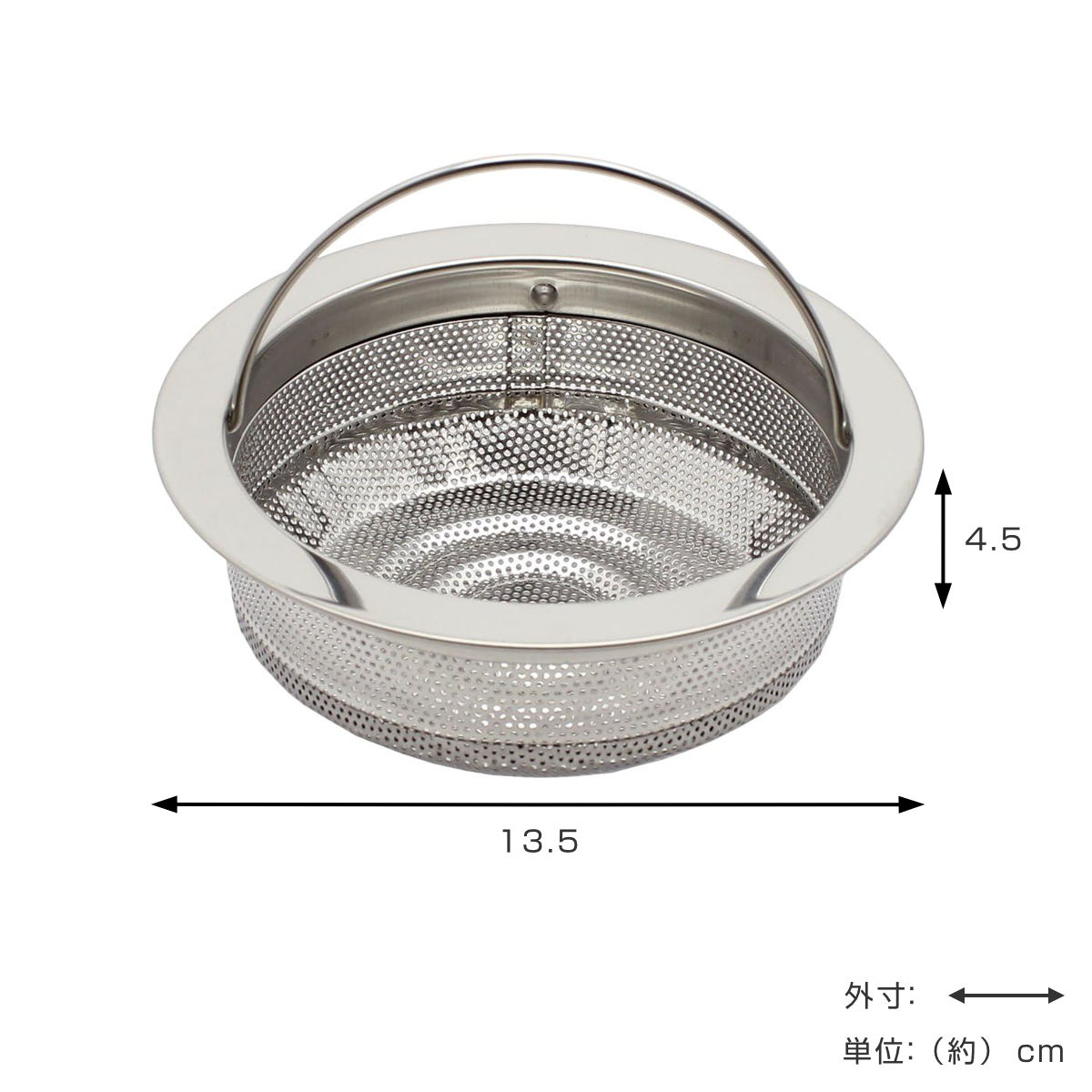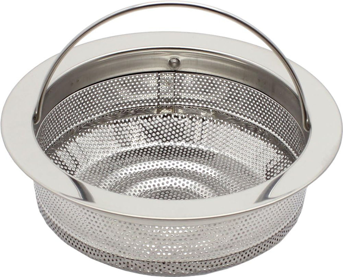 シンクの排水口にセットして、野菜くずや食べかすなどのゴミをしっかりキャッチします。フチ付きで安定して設置できるため、排水管への流れ込みを防ぎ、排水口の詰まり対策に役立ちます。サビにくく丈夫な18-8ステンレス製なので、長くお使いいただけます。