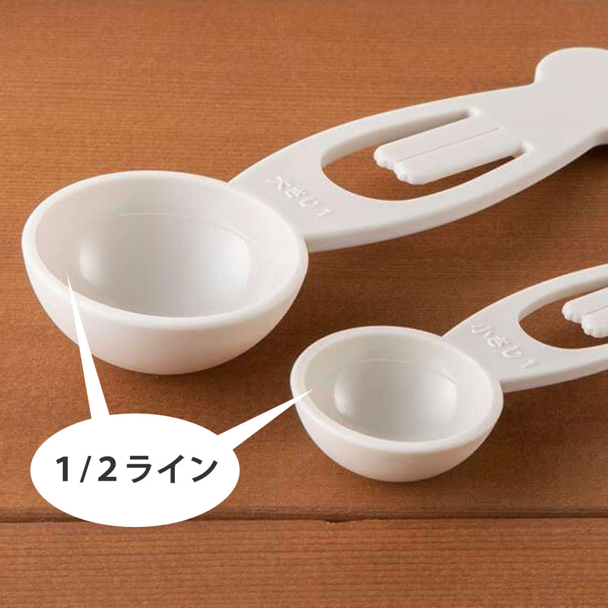 計量部に1/2ラインが入っているので、大さじ1/2、小さじ1/2も量ることができます。