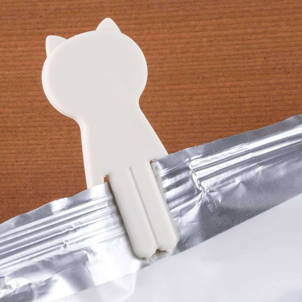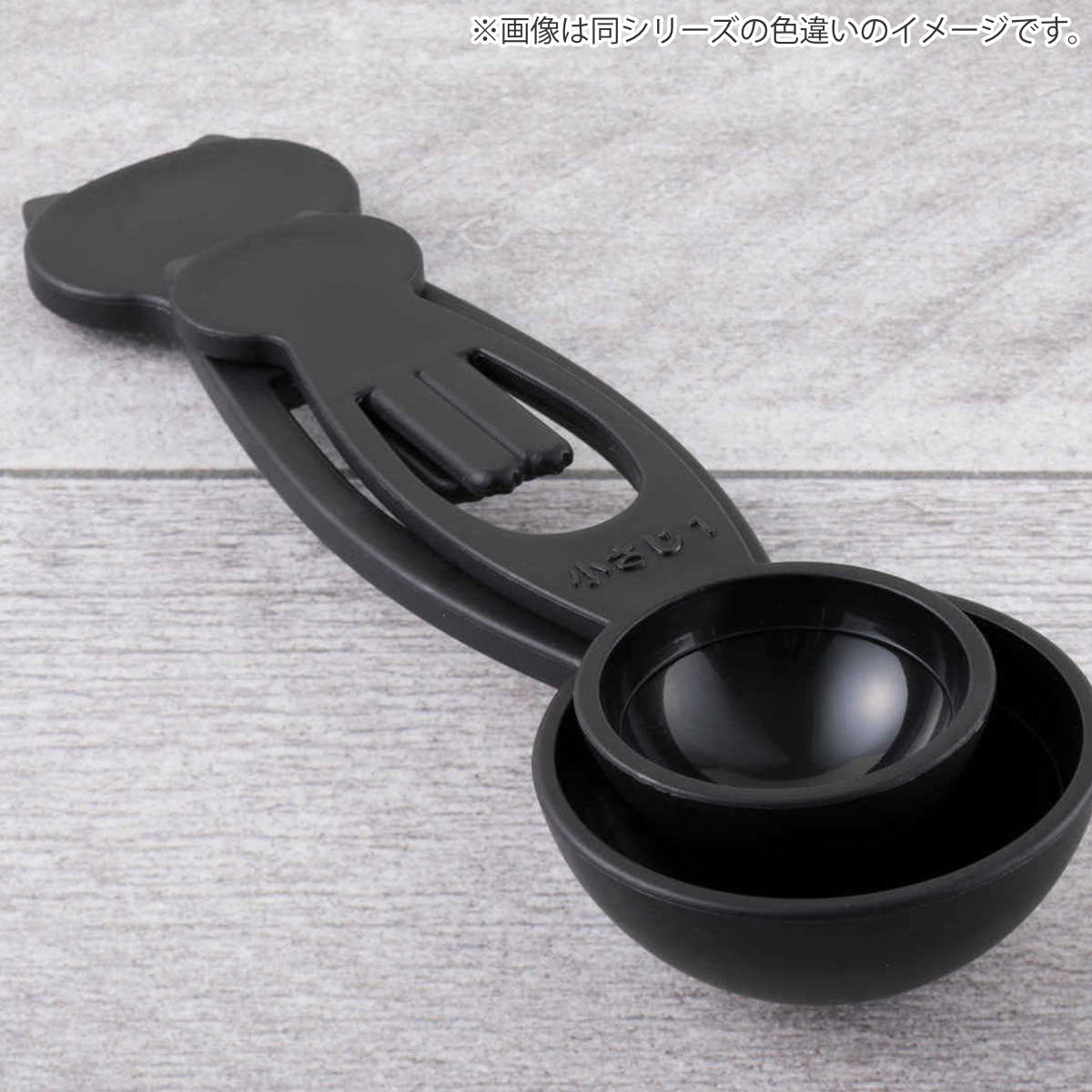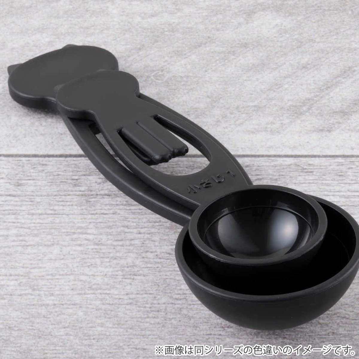 親ねこ(大さじ15ml)と子ねこ(小さじ5ml)がセットになった計量スプーンです。計量スプーンとしてはもちろん、前足のクリップ部分を袋留めとして使うことができます。