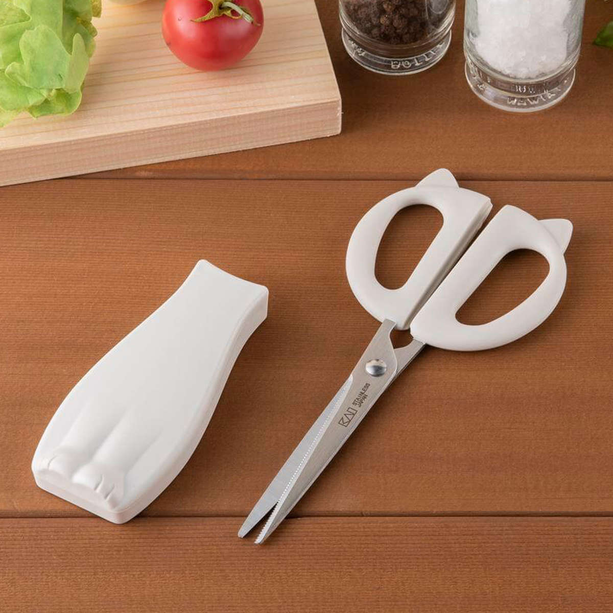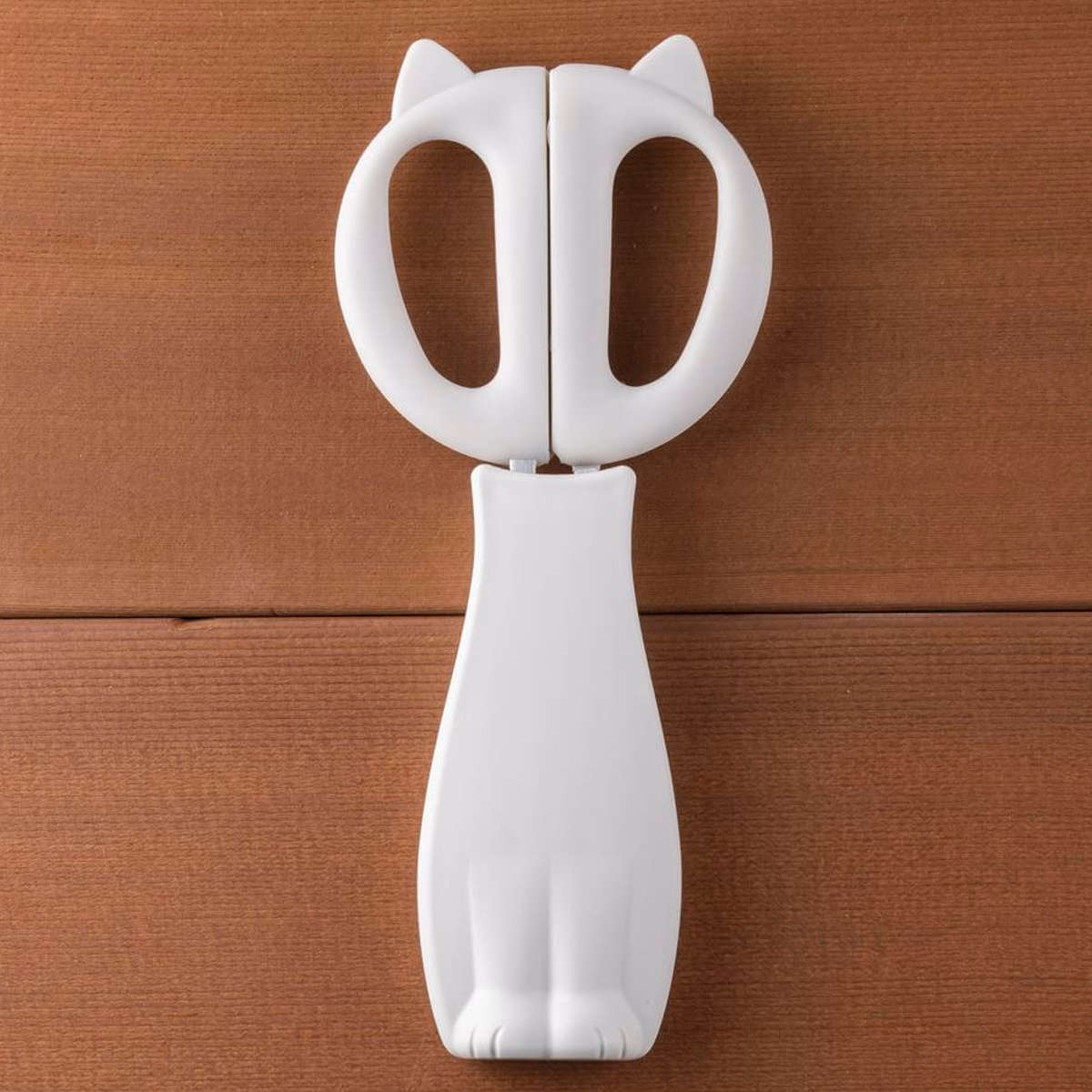 ねこがちょこんと座ったシルエットをモチーフにしたキッチンバサミです。収納ケースにはマグネットが付いているので、冷蔵庫にピタッとくっつきます。見える所に収納できるので、使いたい時にサッと使えてとっても便利です。