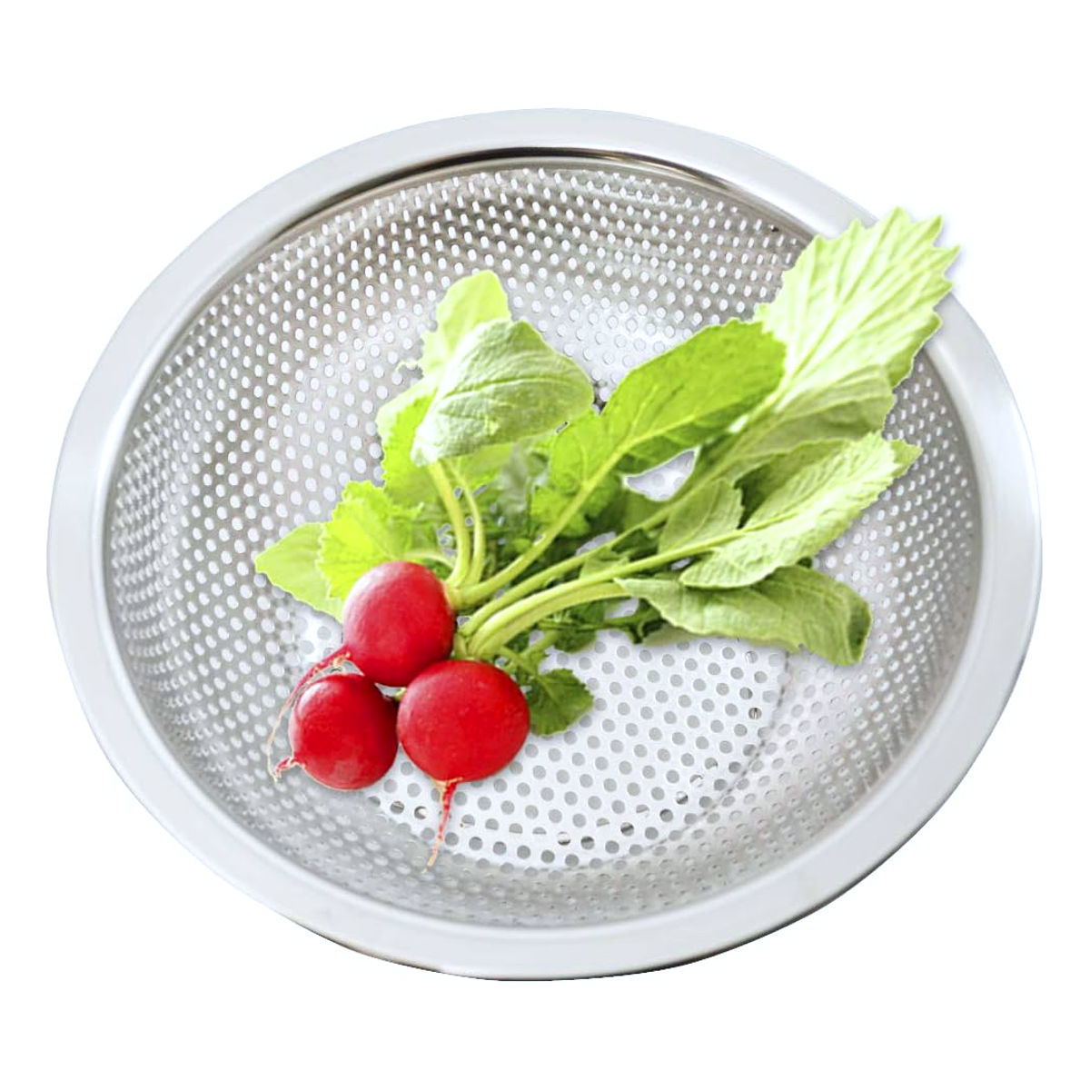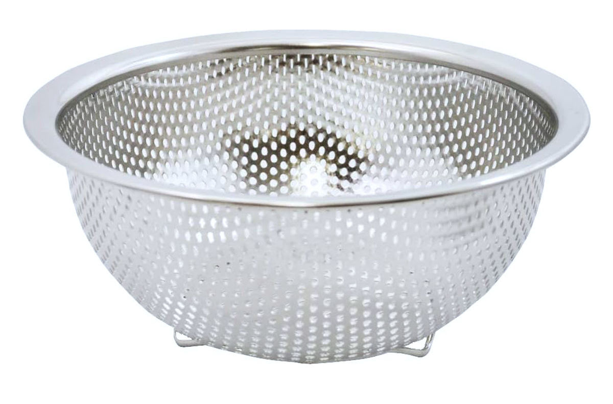細かな穴あき加工により水切れがよく、野菜の水洗いや麺類の湯切りなどに便利にお使いいただけます。ステンレス製でサビにくく、汚れも落としやすいため、お手入れ簡単です。使い勝手がよく、毎日の下ごしらえに活躍します。